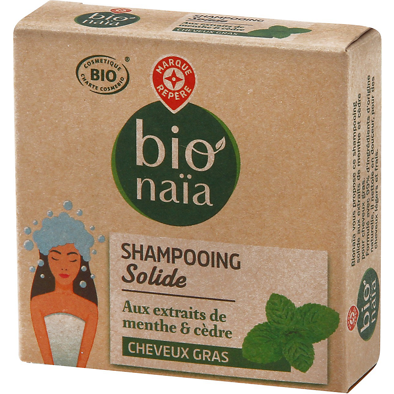 Shampooing Solide aux Extraits de Menthe et Cèdre Cheveux Gras Bio - 85g - BIONAÏA