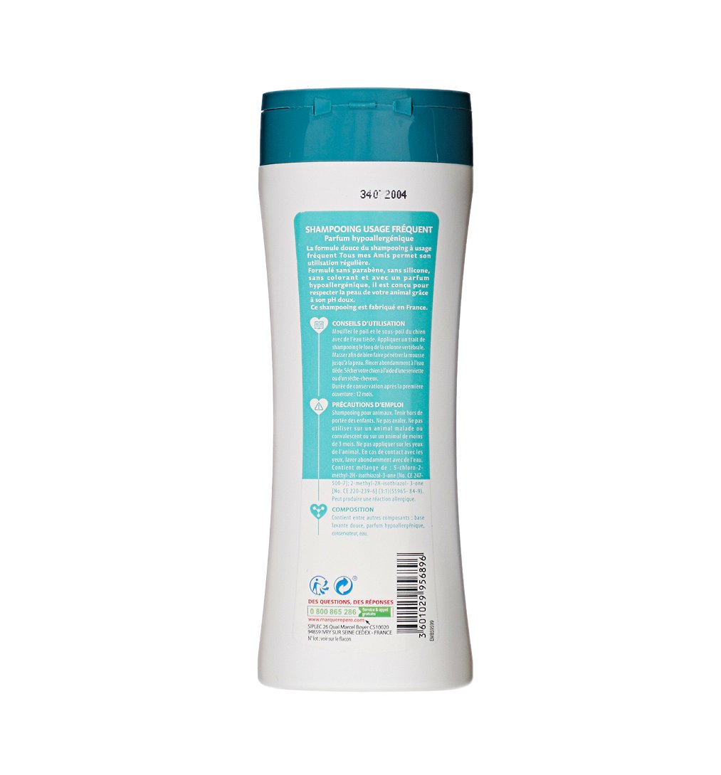 | Libellé | Shampooing usage fréquent chiens 250 ml - Marque Repère - Tous mes amis |
