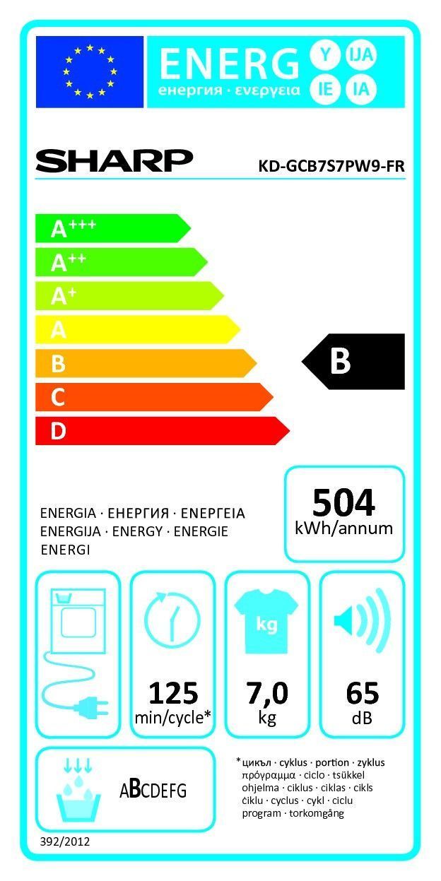 | Libellé | Sharp KD-GCB7S7PW9 sèche-linge Pose libre Charge avant 7 kg Blanc |