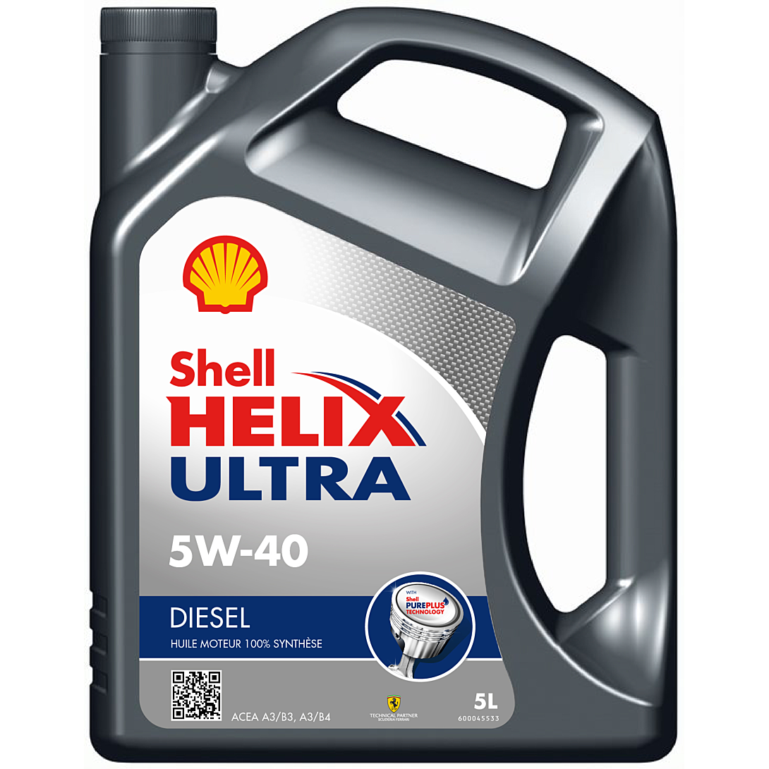 Huile moteur 100 % synthèse : La formule la plus avancée de Shell pour les moteurs diesel hautes performances. Les véhicules d’aujourd’hui ont besoin d’une huile moteur qui évolue au rythme de la demande et qui fait tout pour améliorer la performance et la durée de vie du moteur. C'est pourquoi Shell propose, grâce à sa technologie brevetée Shell PurePlus, une façon totalement innovante de produire des huiles synthétiques, à partir de gaz naturel. Shell Helix Ultra est une gamme d'huiles moteur haut de gamme, formulée à partir de la technologie unique Shell PurePlus. Cette technologie produit une huile moteur qui contribue grandement à conserver la propreté de vos moteurs. La technologie de nettoyage actif a toujours été au cœur de la gamme Shell Helix. Commencer dès le départ avec la technologie unique Shell PurePlus permet au produit d'offrir les niveaux de propreté et de protection les plus élevés. Caractéristiques de Shell Helix Ultra Diesel 5W-40 : Protection inégalée contre les boues : aucune autre huile moteur ne peut maintenir votre moteur si près de la propreté d'usine 1 Permet de prolonger la durée de vie du moteur en protégeant ses surfaces de l’usure et en neutralisant les acides corrosifs dus à la combustion Protection et nettoyage exceptionnels, même pour les plus longs intervalles de vidanges recommandés par les fabricants