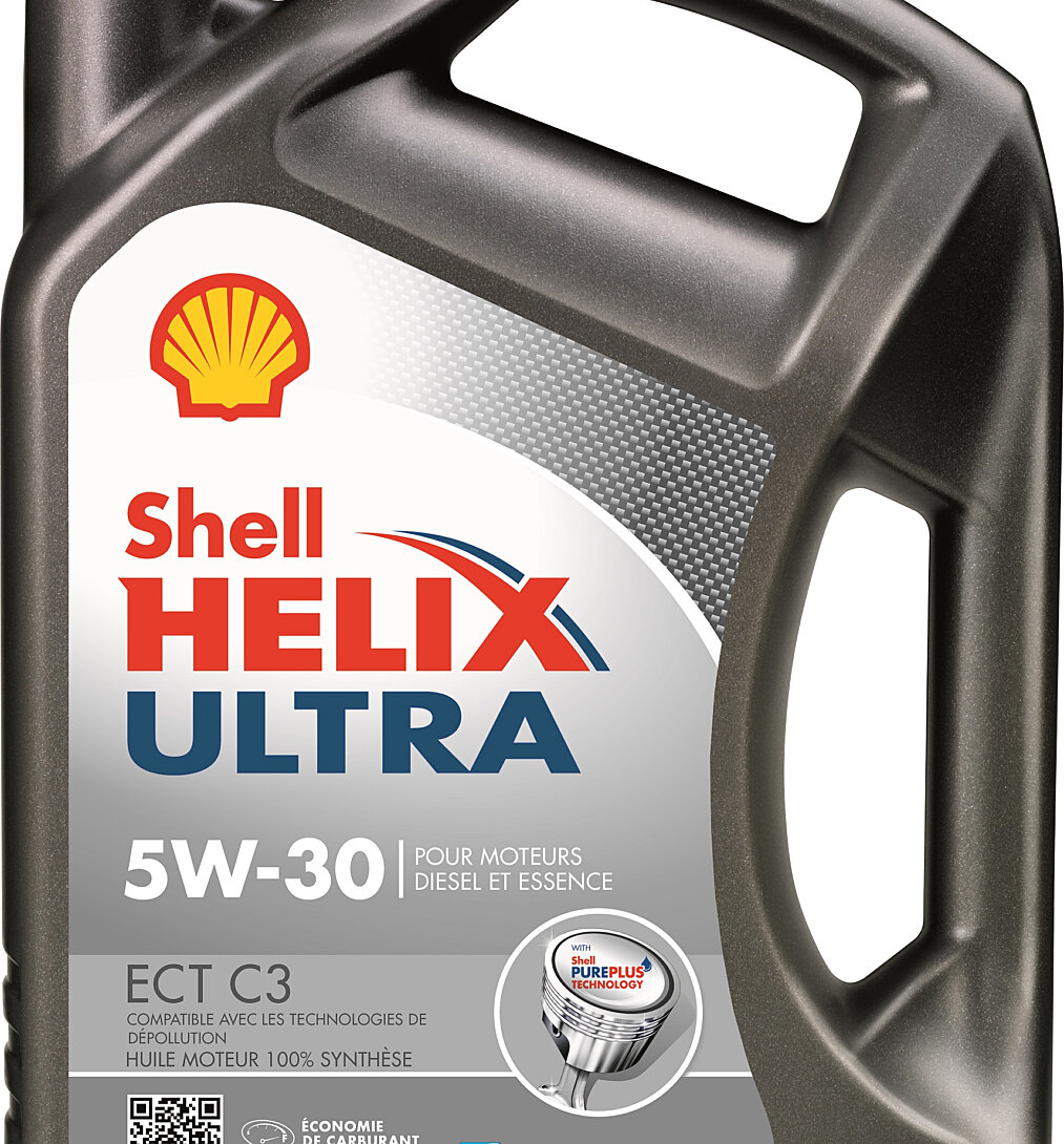 Huile moteur 100 % synthèse : Shell offre une protection optimale pour les systèmes d'émission du véhicule. Les véhicules d’aujourd’hui ont besoin d’une huile moteur qui évolue au rythme de la demande et qui fait tout pour améliorer la performance et la durée de vie du moteur. C'est pourquoi Shell propose, grâce à sa technologie brevetée Shell PurePlus, une façon totalement innovante de produire des huiles synthétiques, à partir de gaz naturel. Shell Helix Ultra est une gamme d'huiles moteur haut de gamme, formulée à partir de la technologie unique Shell PurePlus. Cette technologie produit une huile moteur qui contribue grandement à conserver la propreté de vos moteurs. La technologie de nettoyage actif a toujours été au cœur de la gamme Shell Helix. Commencer dès le départ avec la technologie unique Shell PurePlus permet au produit d'offrir les niveaux de propreté et de protection les plus élevés. Caractéristiques de Shell Helix Ultra ECT C3 5W-30 : Protection contre les boues inégalées : aucune autre huile moteur ne peut maintenir votre moteur aussi près de sa propreté en sortie d'usine 1 Faible viscosité et friction permettant une économie considérable de carburant allant jusqu'à 1,7 % 2 Protège le système antipollution en conservant le filtre à particules diesel propre