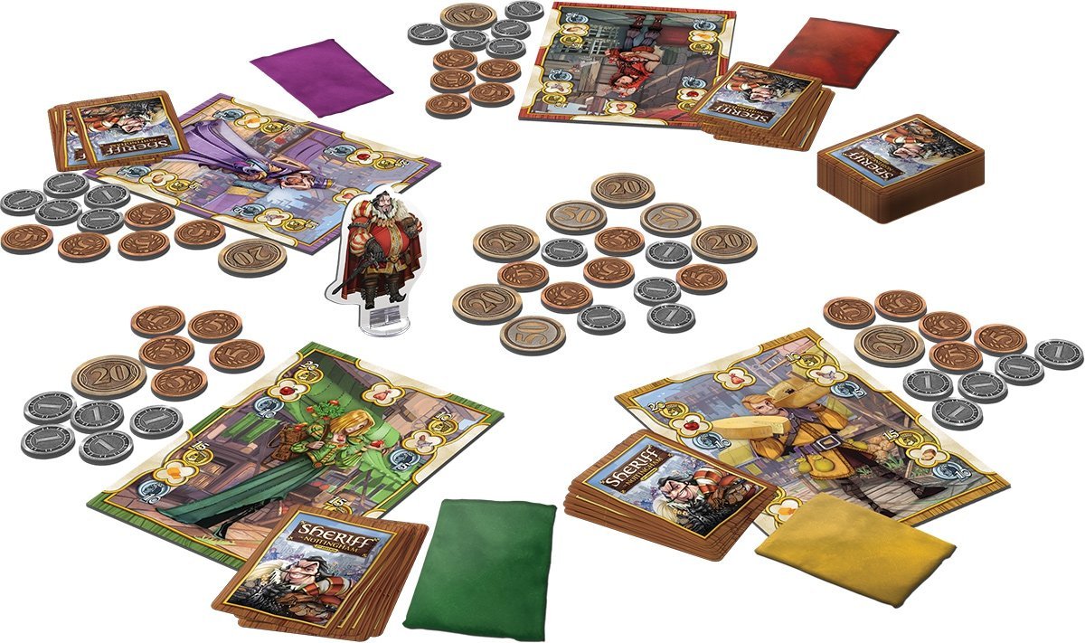 à partir de 14 ans 1 à 2 heures 3 à 6 joueur(s) Sheriff of Nottingham: Qu'est-ce que c'est ?Un palpitant jeu de bluff, pots-de-vin et contrebande pour 3 a 5 joueurs !La convoitise du Prince Jean n'a désormais plus de limites ! Avec toutes les taxes auxquelles ils sont soumis, les marchands ne parviennent plus à gagner leur vie. Le cupide Shérif de Nottingham est à présent chargé de procéder à l'inspection de tous ceux qui franchissent les portes de la ville : il a pour ordre de rechercher les produits de > mais tout le monde sait qu'en réalité il conserve les meilleures marchandises pour son usage personnel.Contrairement au Prince Jean, vous savez parfaitement à quoi vous attendre de la part du Shérif. Ce bon à rien sournois et vénal semble peut-être impressionnant lorsqu'on l'aperçoit aux portes de la ville mais soyons clairs, il n'a aucun scrupule à fermer les yeux en échange d'un pot-de-vin satisfaisant. En ce jour de marché, vous êtes arrivé à Nottingham avec votre cargaison et le Shérif est le seul obstacle qui se dresse entre vous et des profits bien mérités. À vous de tenter de le bluffer ou de le corrompre afin qu'il vous laisse passer... ou peut-être de lui dire la vérité ?!Dans Sheriff of Nottingham, vous incarnez un marchand qui tente de livrer sa cargaison au marché. Chacun à leur tour, les joueurs incarnent le Shérif qui doit choisir quels marchands devront ouvrir leur besace pour subir une inspection et lesquels pourront passer librement. Votre objectif est de parvenir à convaincre le Shérif de vous laisser entrer à Nottingham, par tous les moyens ! À la fin de la partie, le marchand le plus riche est déclaré vainqueur. CONTENU204 cartes Marchandises, 144 cartes Marchandises légales, 60 cartes Marchandises de contrebande, 12 cartes Marchandises royales, 6 cartes Adjoint, 6 cartes Marché noir, 6 cartes Aides de jeu, 133 pièces d'Or, 1 pion Shérif, 2 pions Adjoint, 1 tuile Butin, 6 Stands marchands, 6 sacs, 1 livret de règles
