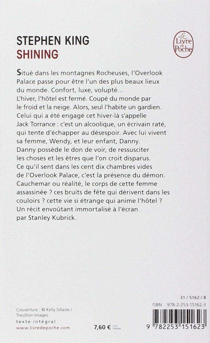 Danny possède le don de voir, de ressusciter les choses et les êtres que l'on croit disparus. Ce qu'il sent dans les cent dix chambres vides de l'Overlook Palace, c'est la présence du démon. Cauchemar ou réalité, le corps de cette femme assassinée ? ces bruits de fête qui dérivent dans les couloirs ? cette vie si étrange qui anime l'hôtel ? Un récit envoûtant immortalisé à l'écran par Stanley Kubrick.