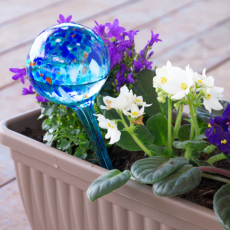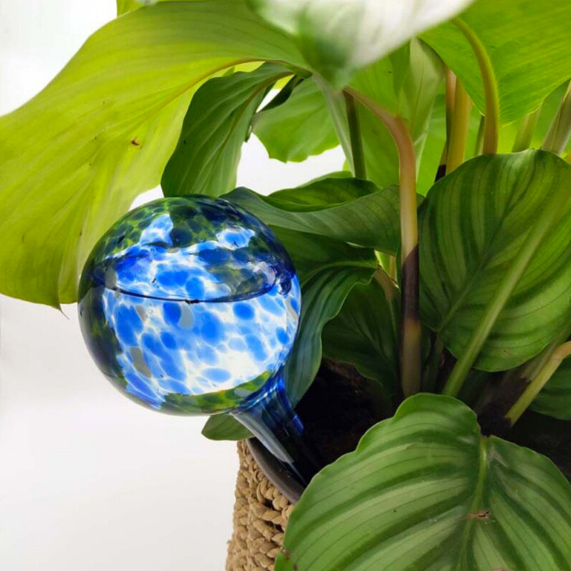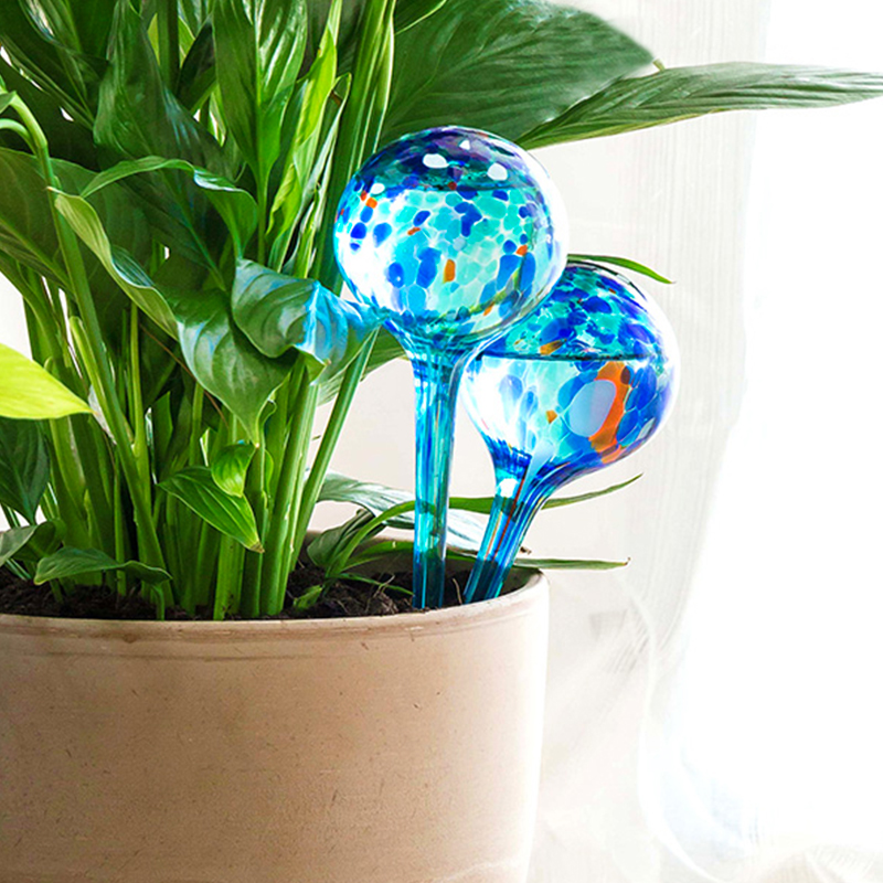 Tout au long de l'année, vous passez du temps et de l'énergie à prendre soin de vos plantes. Il n'est donc pas question de les laisser mourir le jour où vous absentez quelques temps. Partez en vacances serein, les globes sur tige Aqua Loon se chargeront de l'arrosage. Elles fonctionnent très simplement. Il suffit de remplir les ballons d'arrosage avec de l'eau puis d'enfoncer la tige profondément dans la terre, près des racines de vos végétaux, qu'ils soient en pot ou dans une jardinière. L'eau s'écoule alors petit à petit dans la terre. Vos plantes restent ainsi parfaitement approvisionnée en eau. Chaque ballon Aqua Loon contient 350 mL d'eau. Une belle capacité, car cela signifie qu'ils mettront donc environ 10 jours pour se vider totalement. Ils sont si pratiques que vous finirez par les utiliser toute l'année ! Caractéristiques : Style artisanal. Matériel : verre. Pack de 2 ballons. Conception originale. Capacité : 2 x 350 mL. Diamètre approx : 9 centimètres. Convient à tous les types de plantes. Longueur des tiges : environ 30 centimètres. Durée approximative de l’eau dans chaque ballon : 10 jours.