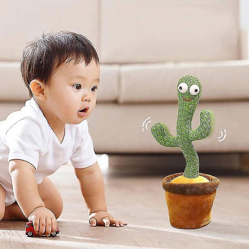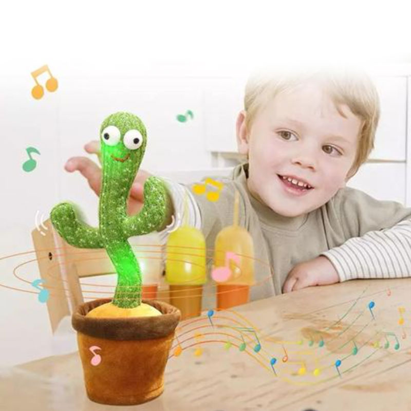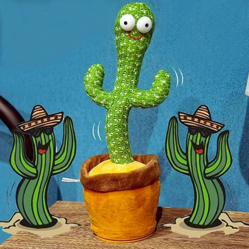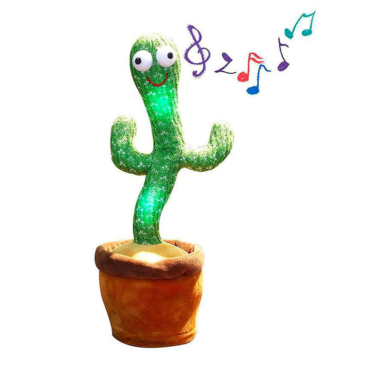 El Cactus Gringo est le plus connu des cactus ! Sa plus grande passion ? Danser et chanter ! Adoptez-le et �gayez vos journ�es et soir�es au rythme de son d�hanch�. El Cactus Gringo poss�de plusieurs fonctions : Danser, chanter et r�p�ter tout ce que vous dites avec une voix rigolote. Il peut m�me enregistrer une phrase enti�re qu'il garde en m�moire. Destin� � tous les publics, ce sont surtout vos enfants qui vont l�adorer ! Cette peluche fonctionne avec des piles et s�allume/s��teint facilement gr�ce � un bouton. SALSA DU CACTUS Ce jouet cactus est id�al pour stimuler l�imagination de votre enfant et pour l'aider � d�velopper ses capacit�s d�apprentissage, ses capacit�s � parler et interagir avec les autres. Votre enfant va adorer danser et chanter sur 120 chansons connues. PERROQUET PIQUANT Capable de r�p�ter tout ce qu'il entend, il sera un bon divertissement pour les plus petits qui aiment entendre leurs propres sons r�p�t�s, mais aussi ceux de leurs parents et de leurs fr�res et s�urs ayant gard� leur �me d'enfant ! EFFETS LUMINEUX Dot� de lumi�res LED, El Cactus Gringo peut cr�er une ambiance lumineuse en dansant. Ludique, vous pouvez r�viser les chiffres, les couleurs, les animaux et les objets � votre enfant en utilisant ce cactus parlant. Cette fa�on d'apprendre est originale et amusante. CARACT�RISTIQUES x1 Cactus dansant Mat�riau : coton PP, peluche Dimension : 35 cm x 9cm Mod�le disponible : vert cactus Poids : 300 g Alimentation : x3 piles AA (non incluses)