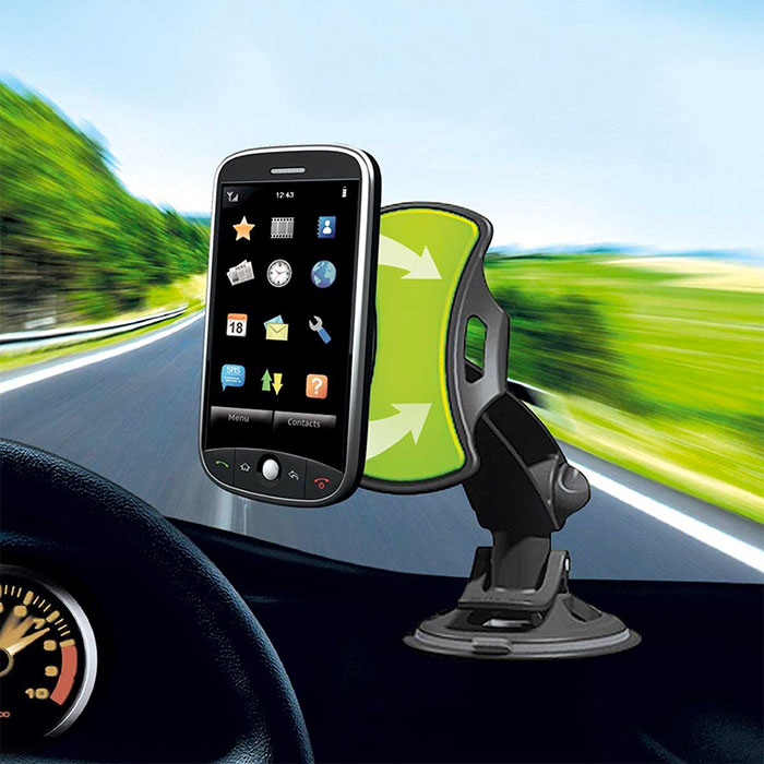 Téléphoner au volant, c'est dangereux. Avoir toujours son kit main-libres sous la main, ce n'est pas toujours évident... Dites "stop" aux complications ! C'est un support de téléphone polyvalent que vous pouvez placer sur le tableau de bord ou pare-brise. Il maintient votre téléphone, vous n'aurez pas à vous soucier qu'il glisse et tombe hors de votre portée. Votre smartphone bien maintenu, vous pourrez l'utiliser comme téléphone ou GPS, tout en gardant vos yeux sur la route. Caractéristiques : Vous pourrez l'utiliser pour fixer n'importe quel dispositif similaire à un smartphone ou GPS. Mesures du bras: 19 cm. Surface de fixation: 9 x 3,5 cm Ce support exclusif soutient votre téléphone ou GPS à l'instant. Pour le démonter, vous ne devez que l'étirer. Ça marche toujours. S'il perd de l'adhérence, ça suffit de humecter un peu sa surface et voilà, il sera comme nouveau. Sa base tournante bouge 360º pour offrir une visibilité parfaite en tout moment. La base, avec son effet ventouse, restera ferme là où vous la placerez la première fois. Parlez et conduisez en toute sécurité .