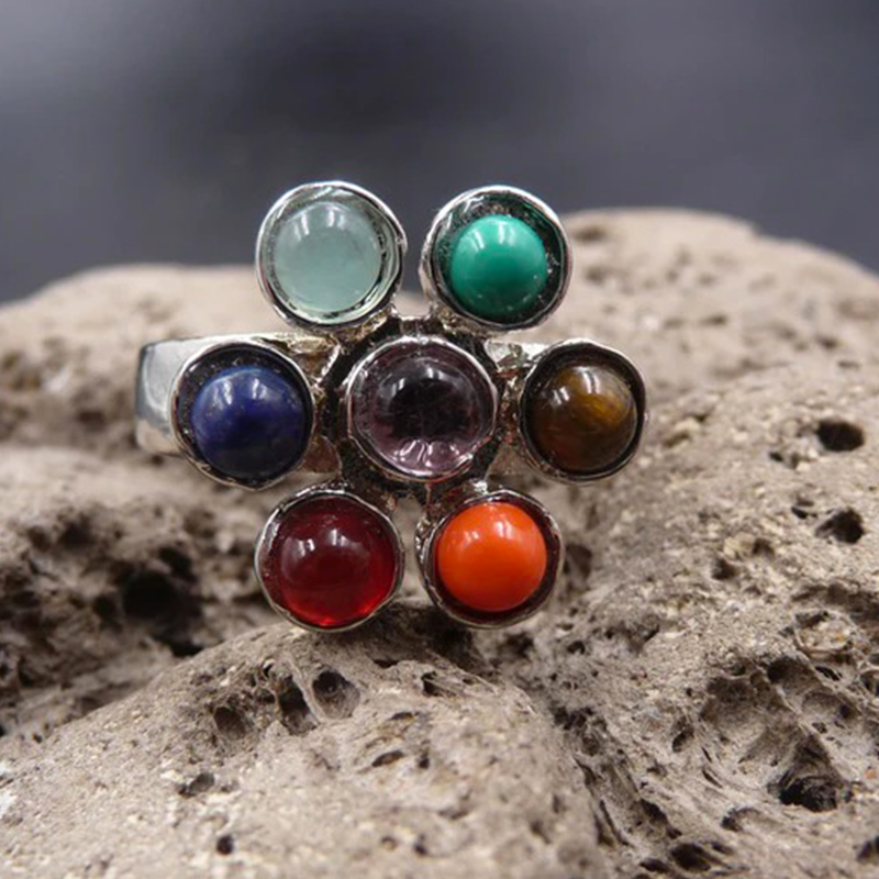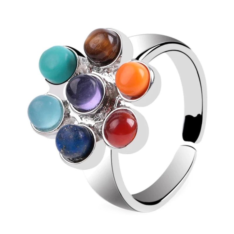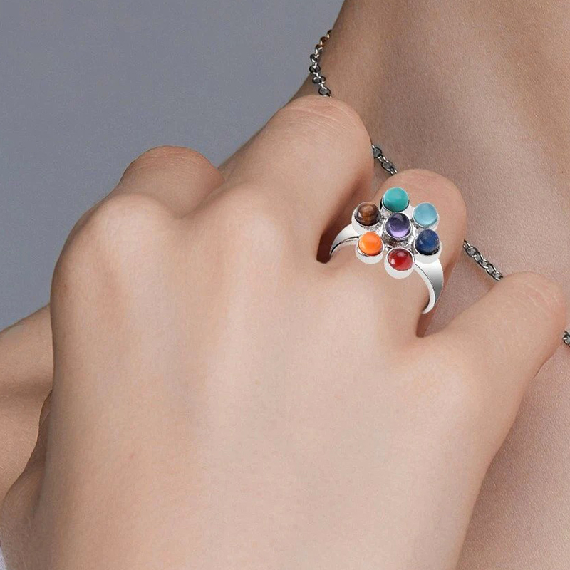 SHOP-STORY - CHAKRA RING : Bague Argenté Fleur de Vie des 7 Chakras Pierres Naturelles Équilibre Intérieu