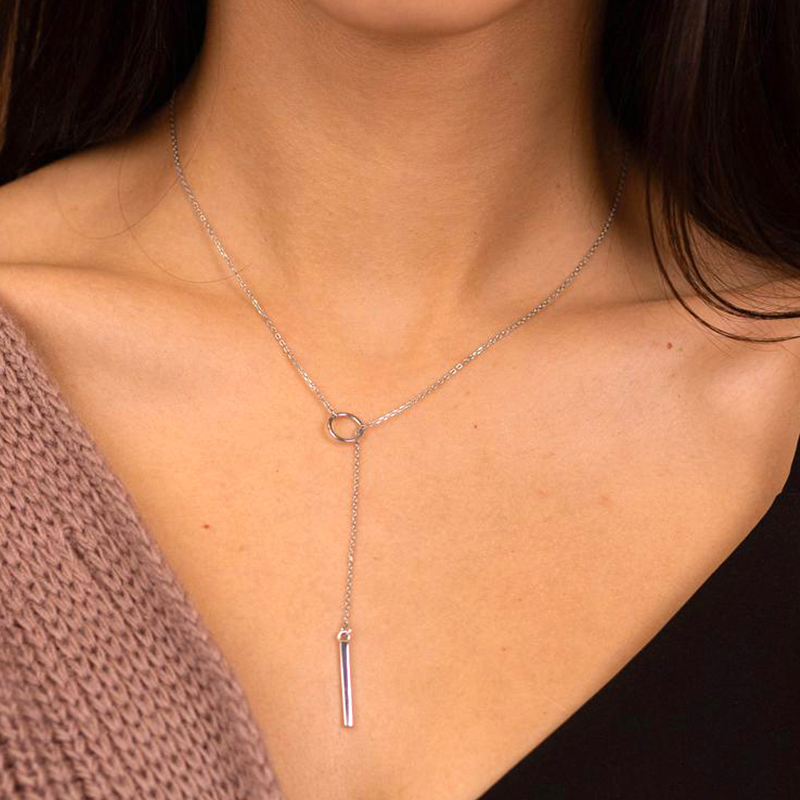 Urban style ou Chic Soirée Un collier de soirée, minimaliste et élégant, ou un collier urbain pour accompagner un look streetwear, ce sautoir s'adapte à tous les styles. Baptisé le Y Tie outre-Atlantique au vu de sa forme, ce collier a été popularisé par les starlettes d'Hollywood, chanteuses et mannequins. Parmi celles qui ont insufflé à ce pendentif une nouvelle tendance de la mode, on retrouve Miranda Kerr, Zoe Saldana, Jessica Alba ou Rihanna. Ce collier est constitué d'une chaîne à maillons étroits, ornée à une extrémité d'une fine barre et de l'autre un large cercle. La longueur du collier est ajustable. Il peut se porter seul ou associé avec d'autres colliers plus courts pour habiller le cou. Ce bijou lariat est la touche de raffinement qu'il vous manquait, couleur or ou argent, à vous de choisir. Caractéristiques Collier cravate, nommé aussi lariat ou lasso, coulissant pour femme Matériau : alliage de métaux 2 coloris au choix : argenté ou doré Longueur totale du collier : 62 cm