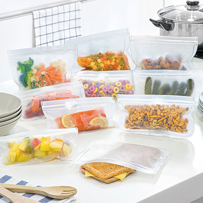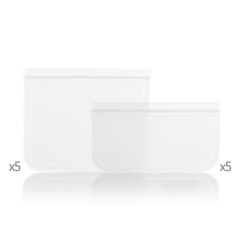 Pack de 10 sacs alimentaires lavables, réutilisables et écologiques Cet ensemble de 10 sacs de deux tailles différentes, très pratique pour conserver et transporter les aliments facilement et en toute sécurité, qu’ils soient solides ou liquides. Les 5 petits sacs sont parfaits pour les fruits, les sucreries, les fruits secs, etc. Les 5 grands sacs sont très utiles pour les sandwichs, les biscuits, les légumes, etc. Ces sacs sont également conçus pour être mis au réfrigérateur ou au congélateur. Ils constituent la meilleure option pour emporter un encas, une collation ou même un repas à l’école, au travail, à la salle de sport ou même pour une randonnée. Lavables et réutilisables, ces sacs sont une solution économique et respectueuse de l’environnement contrairement à l’aluminium ou aux sacs plastiques. Pack de 10 sacs alimentaires lavables, réutilisables et écologiques Caractéristiques Sans BPA. Matériel : PEVA. Inclut : 10 unités. Réutilisable et écologique. Léger, maniable et lavable. Design innovant et fonctionnel. Facile à transporter et à ranger. Fermeture hermétique : zip-lock. Ne convient pas aux lave-vaisselles. Utilisations : transfert de nourriture et conservation des aliments. Convient pour le stockage des aliments au réfrigérateur et au congélateur. Convient aux aliments solides et liquides : anti-goutte et anti-débordement. Dimensions approximatives : 5x : 21,5 x 12 centimètres et 5x : 21,5 x 18 cm.