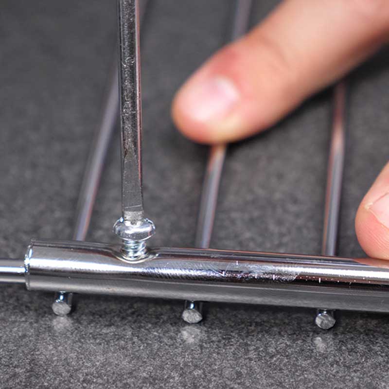 Vous l'aurez remarqué : il manque toujours une plaque de cuisson à votre four. Vous avez la place pour un étage de plus et pourtant vous n'avez pas de grille supplémentaire. Même en vous rendant dans un magasin spécialisé, il est parfois difficile de trouver une grille adaptée à votre four. La solution se nomme Grillrost Universal. Il s'agit d'une grille de cuisson extensible. Elle s'adapte à tous les fours et toutes les cuisinières grâce à ses rallonges coulissantes. Fabriquée dans un acier inoxydable chromé, elle est hyper résistante. 4 vis sont fournies pour renforcer la sécurité de cette grille amovible. Instructions : Réglez la grille en fonction de la largeur de votre four. Une fois que la dimension de la grille correspond à l'intérieur de votre appareil de cuisson, serrez les 4 vis. Contrôlez régulièrement le serrage. N'utilisez pas la grille sans les 4 vis. Elle pourrait chuter et risquer de vous brûler. Caractéristiques : x1 grille universelle x4 vis de fixation Extensible de 33 à 61 cm Matière : acier inox chromé Dimensions du paquet : 36 x 32 x 2 cm Poids total : 628 gr Poids de la grille : 613 gr