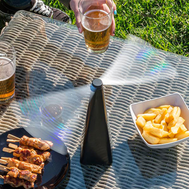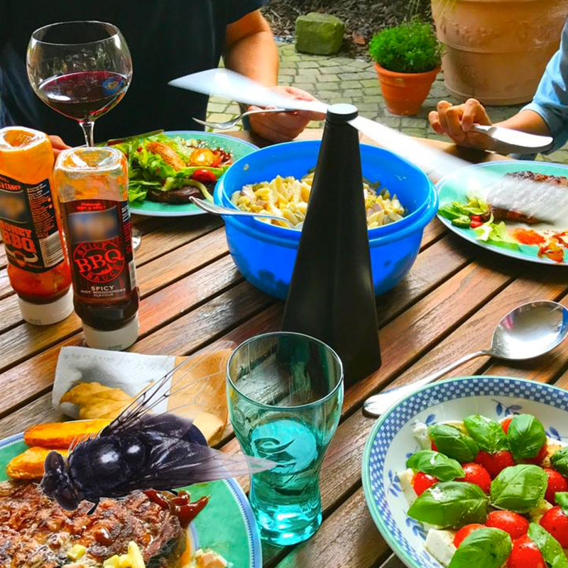 Avec les beaux jours, les mouches envahissantes sont de retour. Vecteurs de bactéries, elles n'hésitent pas à se vautrer allégrement dans votre nourriture. Pour régler se problème, nous avons trouvé la solution la plus efficace pour les garder éloignées de vos plats. Safebug, le ventilateur anti-mouches ! Unique en son genre, il vous aidera à lutter contre tous les insectes volants, mouches et moucherons, guêpes et abeilles, etc. L'appareil dispose de deux pales rotatives sur lesquels on retrouve des bandes réfléchissantes. Une fois allumées, les hélices du Safebug se mettent à tourner. Le mouvement des pales, l'air déplacé, et la lumière qui se reflète sur les points holographiques, effraient ces nuisibles volant en tout genre. Placez le Safebug au centre de la table pour garder vos plats à l'abris. Cette technologie est écologique car beaucoup plus efficace que des pesticides classiques. Sans produits chimiques, ni odeurs, Safebug ne mettra pas en danger la santé de votre famille contrairement au spray que vous pouvez vaporiser à proximité des aliments et des boissons. Cet été, profitez de vos repas l'esprit tranquille. En extérieur comme en intérieur, Safebug éloignera tous ces envahisseurs. Activez-le et profitez pleinement des pique-niques en famille ou entre amis ! Sécurisé, les pales de l'appareil sont totalement inoffensives et s’arrêtent au moindre contact. Vous pouvez le disposer sur votre table ou votre nappe sans accident. Safebug fonctionne avec deux piles AA (non fournies). Vous pouvez l’amener à tous vos pique-nique et repas improvisés en plein air. Caractéristiques : Fonctionne à piles (2 x AA 1.5V, non fournies) 2 pales de 20 cm chacune Puissance : 0.5 W Dimensions approx.: 7,5 x 26 x 7,5 cm Matière : ABS