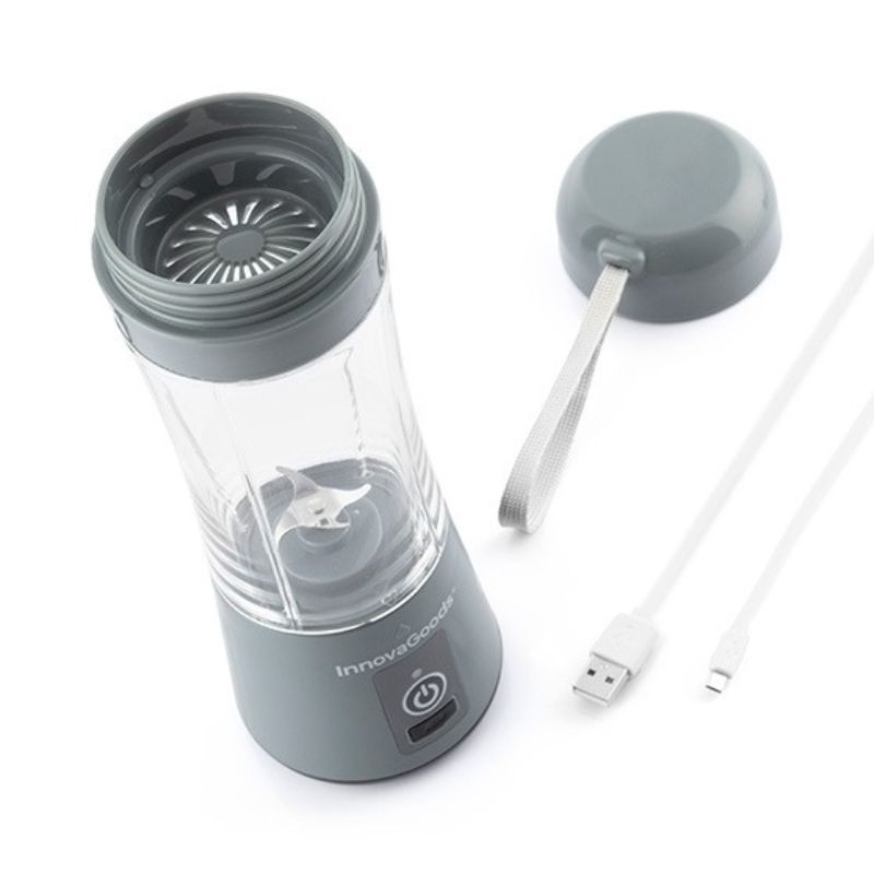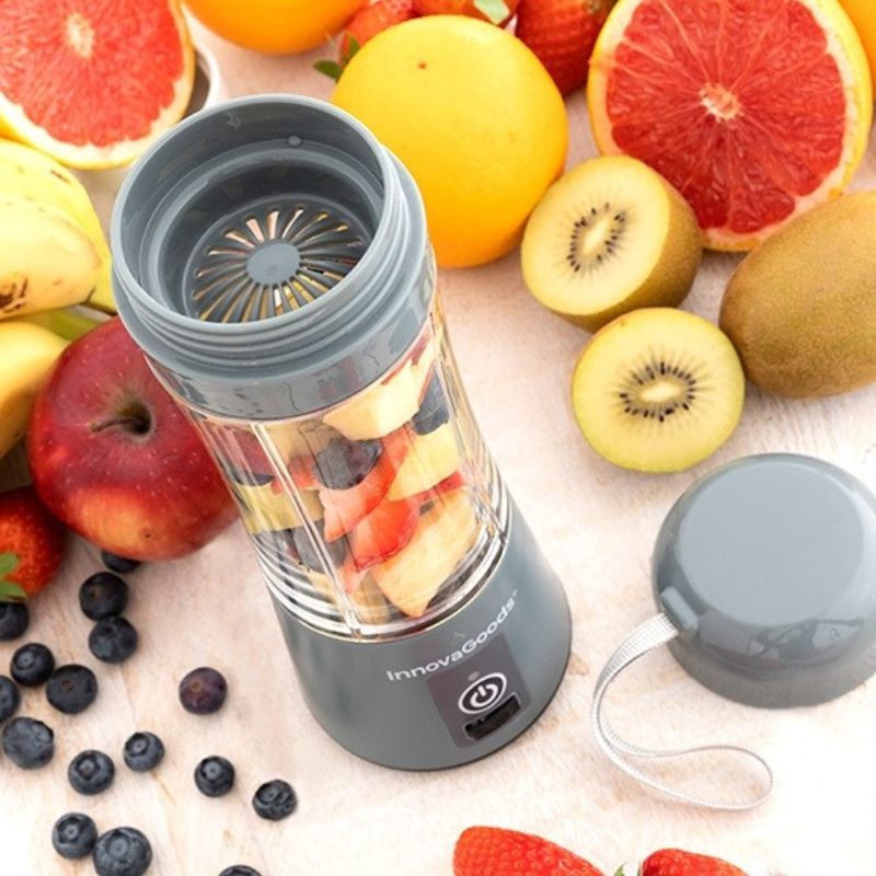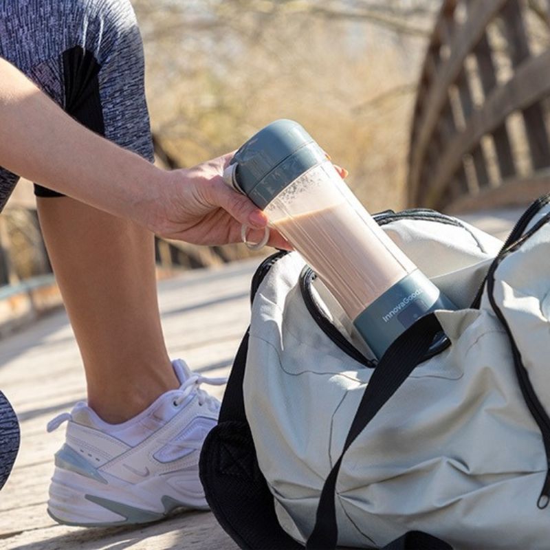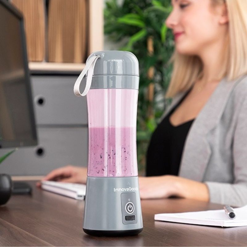 Le mixeur Shakuit rechargeable est parfait pour réaliser des milkshakes, jus et smoothies n’importe où et n’importe quand, salle de sport, bureau, transport… Grâce à sa conception compacte et portable, vous pourrez l’emporter n’importe où et il se glissera parfaitement dans votre sac. Avec Shakuit manger 5 fruits et légumes par jour n’a jamais été aussi simple ! Choisissez les fruits et légumes de votre choix et glissez les dans le mixeur, vous n’avez plus qu’à le refermer, mixer et apprécier votre smoothie pour toute la journée. Le Shakuit est complètement démontable pour faciliter son nettoyage. Il possède une capacité de 380 ml parfait pour un smoothie qui dure tout au long de la journée, vous redonnant le plein d’énergie, doté de 4 lames le Shakuit transformera un en rien de temps vos fruits et légumes en un délicieux smoothie ou jus de fruits. Réalisez vos smoothie, jus frais ou milk-shake où que vous soyez grâce à sa technologie sans fil, et emportez vos boissons partout avec vous grâce au contenant transportable et sa poignée ergonomique. Le Shakuit vous indique lorsqu’il n’a plus de batterie grâce à son un indicateur de charge LED. Pour le recharger il vous suffira de le brancher à un câble USB. Il possède un système de sécurité, afin que les lames ne fonctionnent pas lorsque le produit n'est pas correctement assemblé et fermé. Et dispose également d'un système anti-goutte, anti-déversement et d'un filtre de sortie pour verser le contenu prêt à boire, sans grumeaux ni pulpe. Très simple d’utilisation, il vous suffit d'appuyer sur le bouton marche / arrêt jusqu'à ce que vous obteniez la texture souhaitée. Vous obtiendrez rapidement un résultat optimal grâce à sa puissance et sa vitesse (17000 tr/min). Afin d’améliorer le processus de mélange nous vous conseillons de tenir le Shakuit à 45° et de le secouer doucement. Caractéristiques : Matériaux : PC, PP et acier inoxydable Capacité : 380 ml 4 lames Filtre interne Vitesse : 17000 r.p.m. Idéal pour les jus de fruits, les milkshakes, les jus détox, les smoothies et les aliments pour bébés. Charge USB : comprend un câble USB à micro USB LED indicatrice de chargement Batterie : Li-ion 3,7 V / 1200 mAh / 60 W - DC in : 5 V / 1 A Ne convient pas aux lave-vaisselles Dimensions approx : Ø 8 x 24 cm