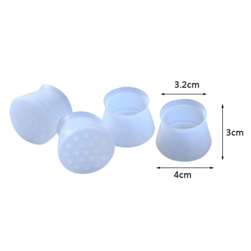 SILICONE CAP : Lot de 4 Capuchons de Protection en Silicone pour Pieds de Chaises et Meubles. Grâce à ces embouts protecteurs pour pieds, les chaises deviennent silencieuses! Fabriqués dans un matériau extrêmement souple, les Silicone Cap s'adaptent aux chaises à pieds ronds ou carrés et protégeront vos sols des bruits et des rayures. Pas besoin de colle, ces capuchons polyvalents et flexibles s’enfilent en un clin d’œil et ne se détachent pas facilement. Durables et de qualité supérieure, vous pouvez remplacer toutes les extrémités en caoutchouc de vos chaises, tables, bureaux, échelles, meubles de cuisine ou de salle de bain, lits, planches à repasser et tous vos autres pieds tubulaires. Les Silicone Cap redonnent un souffle de jeunesse à vos vieux meubles aux pieds usés et protègent vos planchers. Les bouchons de protection Silicone Cap contiennent des particules antidérapantes. Le fond, épais et résistant à l'usure, bloque la friction entre les pieds de chaise et le sol. Ces housses protectrices conviennent aux pieds dont le diamètre est compris entre 3 et 4.5 cm. Également facile à nettoyer, les embouts sont totalement étanches. Grâce aux Silicone Cap, vous aller retrouver la joie de déplacer vos meubles sans avoir peur de rayer vos sols et de faire du bruit. Caractéristiques Dimensions : Diam. : 3.5cm env. - Haut. : 3 cm en. Composition : En silicone translucide Lot de 4 pour pieds