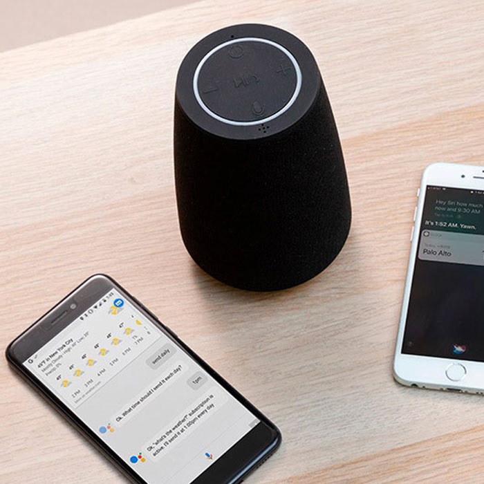 Haut-Parleur Bluetooth Intelligent Assistant Vocal Découvrez les multiples utilités du nouveau haut-parleur Bluetooth intelligent assistant vocal VASS ! Grâce à sa connexion Bluetooth avec plusieurs appareils mobiles et ses applications (smartphones, tablettes...), ce haut-parleur intelligent est un parfait assistant virtuel. Il permet d'écouter de la musique, de répondre aux appels, de piloter sa maison connectée et dispose de beaucoup d'autres fonctions à travers la reconnaissance vocale de Siri et Google Assistant (répondre à des question concernant la météo, connaitre l'état de la circulation, etc.). Utile, cette enceinte Bluetooth intelligente, nous permet de passer moins de temps sur notre smartphone à pianoter pour chercher des informations, organiser nos rendez-vous, envoyer des SMS, répondre à un e-mail… Chaque jour, notre utilisation de la technologie évolue, l'assistance vocale répond à ce besoin de simplifier les interactions avec nos appareils. Avec un assistant vocal, on parle en language naturel, on va plus vite qu'à l'écrit et on peut faire autre chose en même temps. Compact et très esthétique et sans fil, ce haut-parleur trouvera sans hésiter sa place dans votre maison. Caractéristiques Fabriqué en ABS. Design moderne et élégant. Son 360º. Bluetooth 4.2. Batterie au lithium : 1800 mAh. Temps de charge env. : 4 h. Autonomie approx. : 3-5 h. Microphone intégré. Tension : 220-240 V. Puissance : 5 W x 2. Fréquence : 100 Hz - 20000 Hz. Comprend câble de charge (USB à micro USB). Compatibilité : iOS / Android / Siri / Google Assistant. Diamètre x hauteur env. : 9 x 14 cm. Packaging et manuel en 6 langues (anglais, français, espagnol, allemand, italien, portugais).