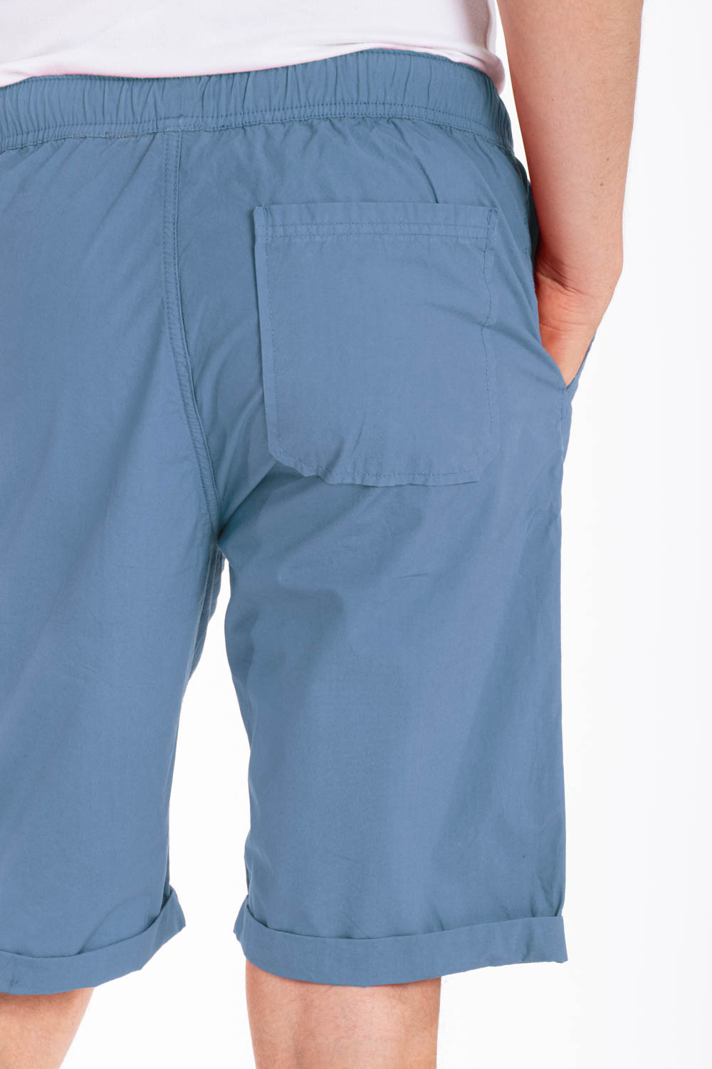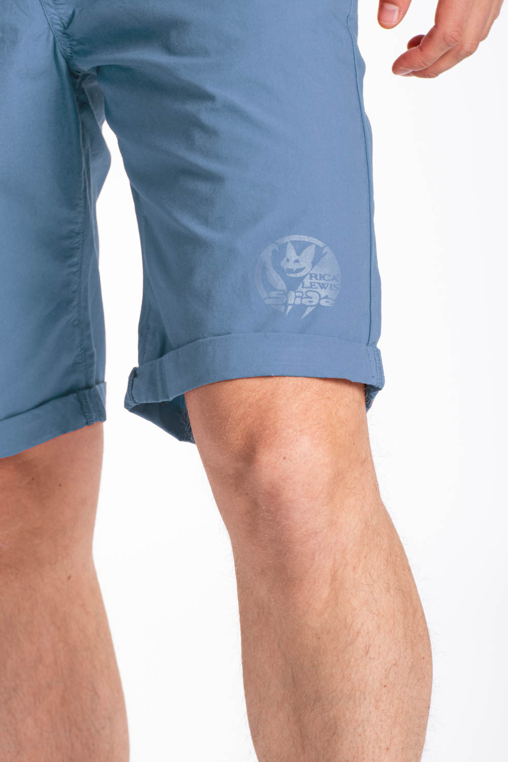 Bermuda à revers, coupe classique, taille élastiquée avec cordon de serrage contrastant. Poches chino sur le côté, une poche plaquée au dos. Coutures ton sur ton. Logo SLIDE ton sur ton imprimé au bas de la jambe. Toile parachute 100% coton 155 grammes. 100% coton. Le mannequin porte une taille L.