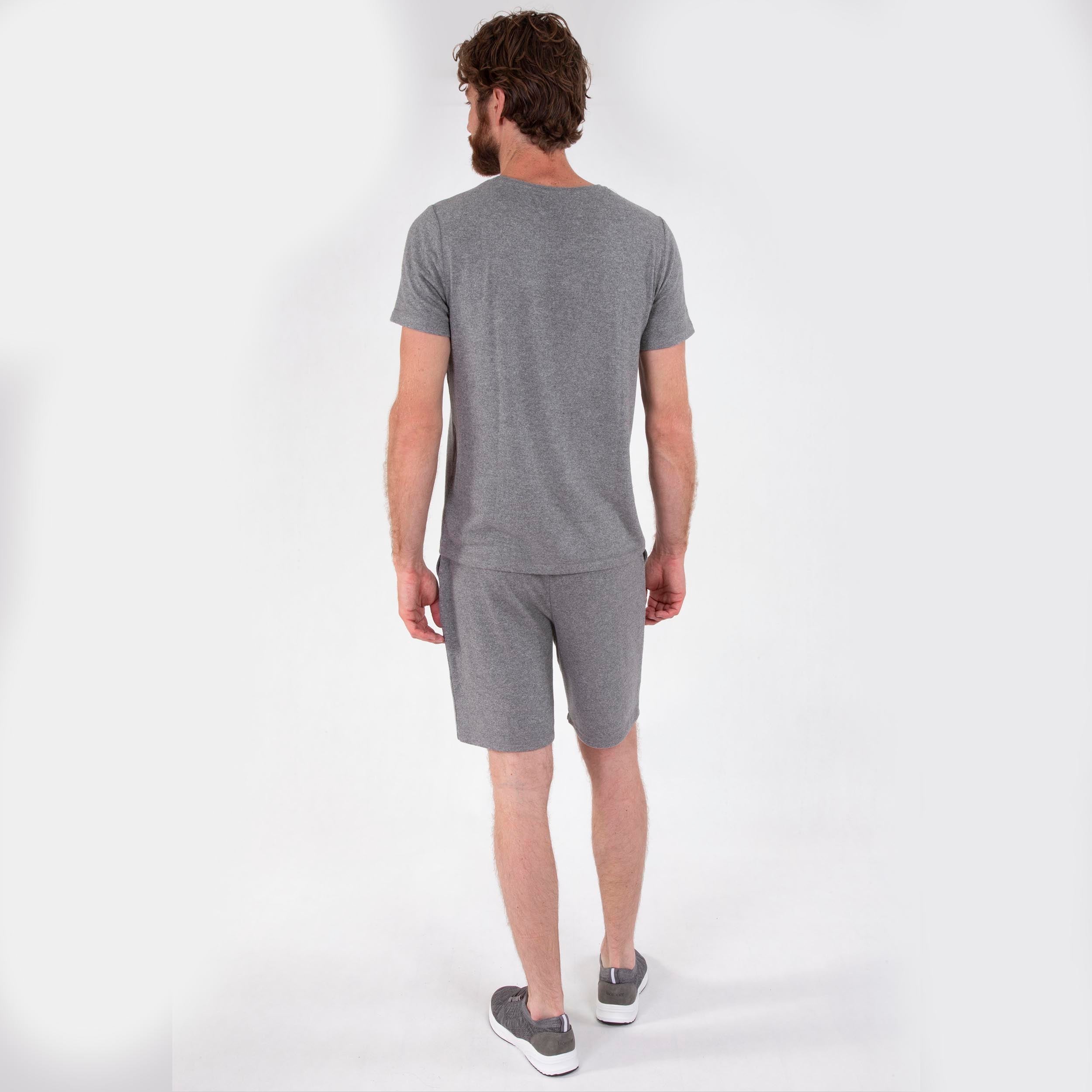 Quoi de plus confortable qu'un short pour passer un agréable été. Ce short gris avec son cordon ajustable donne un look raffiné à ce short gris. Grâce à sa matière composée majoritairement de viscose ECOVERO™, ce short gris a un toucher ultra doux. Complétez votre look avec le t-shirt gris à manches courtes ! La mannequin mesure 187 cm et porte une taille M.