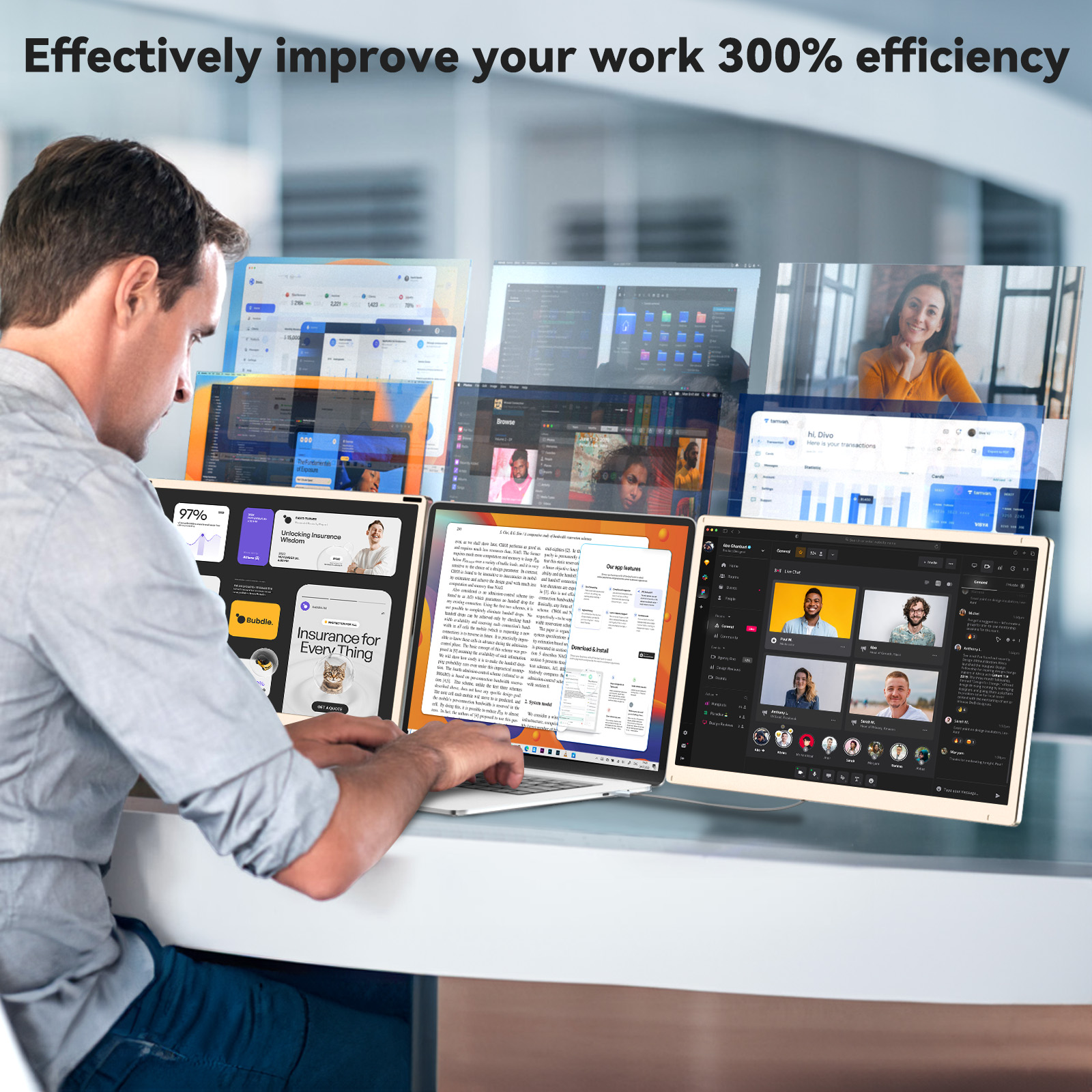 SIAVIALA S6 - Écran Triple Portable 15,6 Pouces avec Deux Écrans Supplémentaires pour Station de Travail