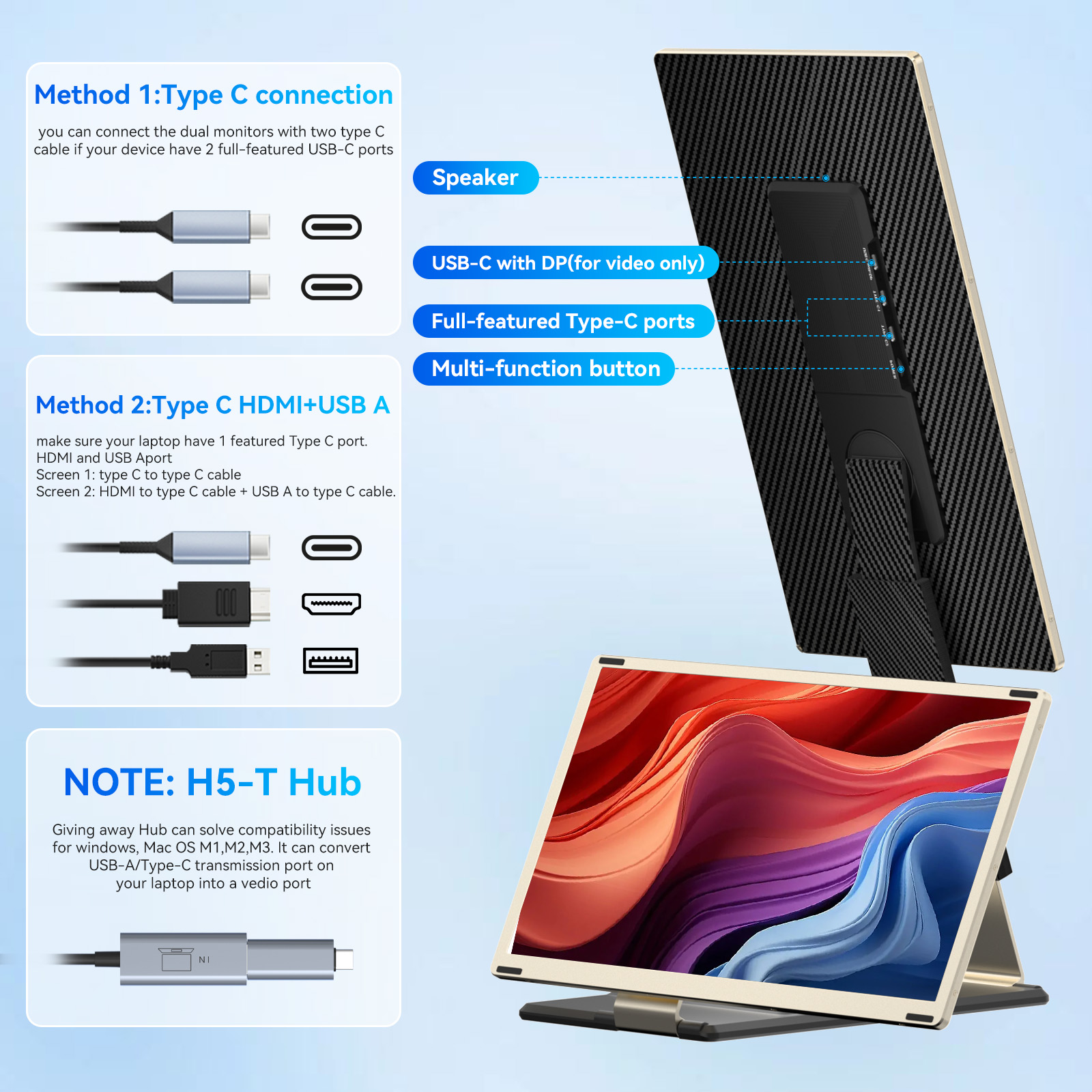 Configuration Plug & Play – Branchez instantanément via USB-C ou HDMI, aucun pilote nécessaire