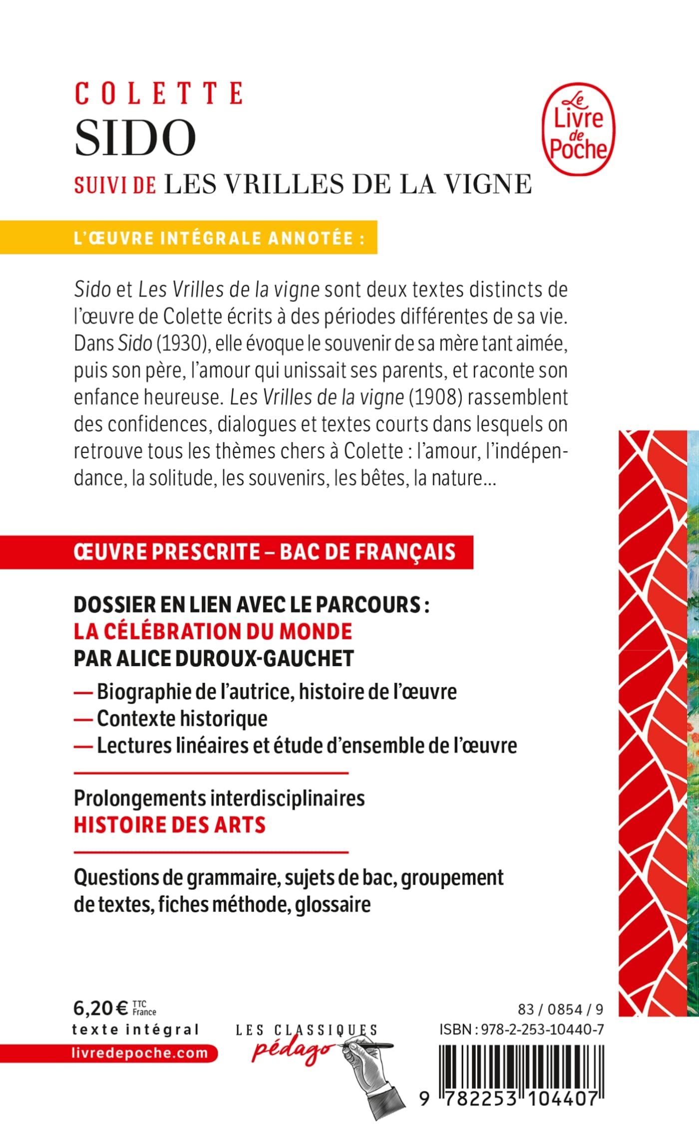 | Libellé | Sido suivi de Les Vrilles de la vigne (Edition pédagogique) - BAC 2025 (Poche) |