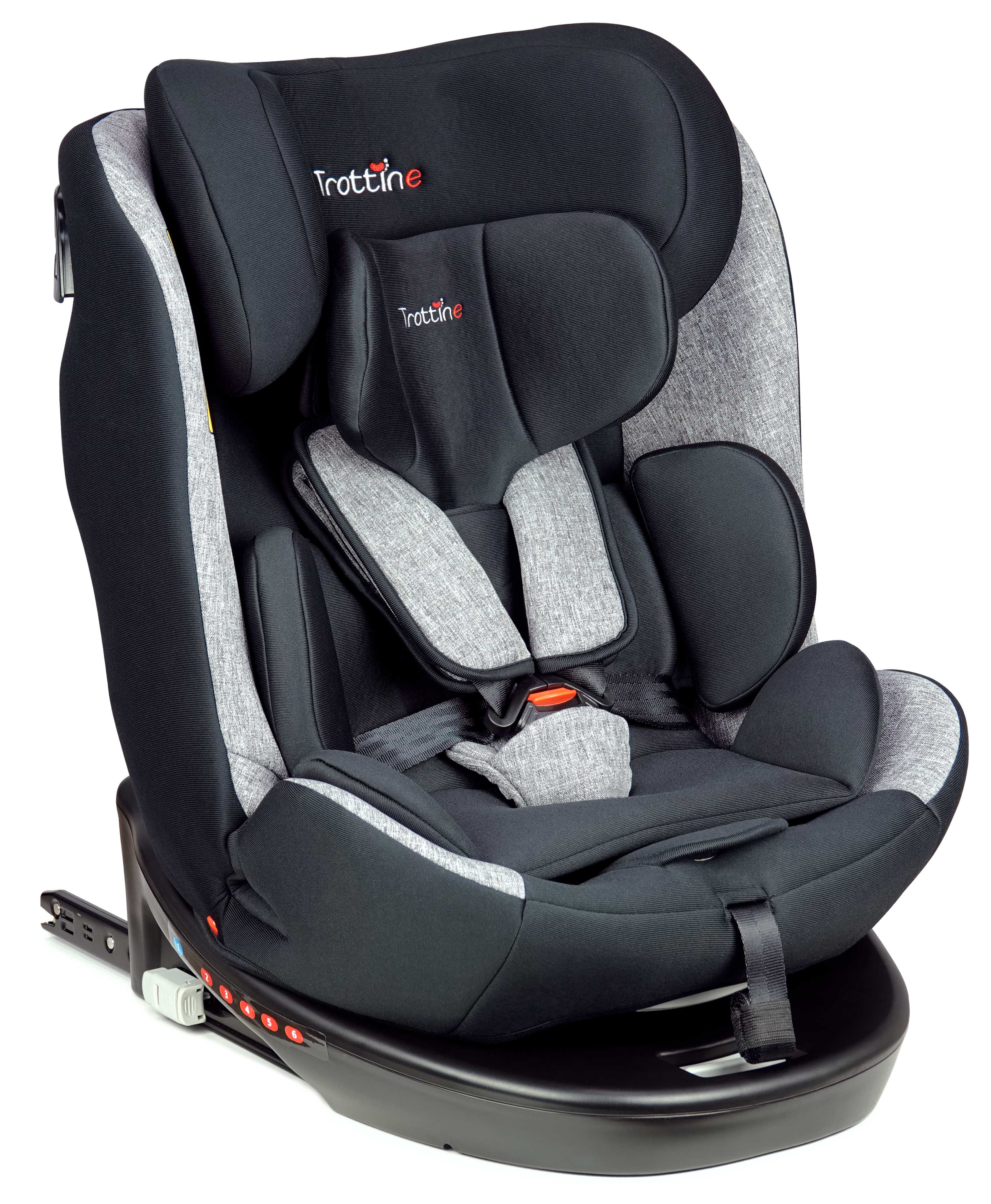 • Siège auto nouvelle norme R129 d'une très longue durée d'utilisation pour enfants de la naissance à 12 ans environ • De 40 à 105 cm : installation Isofix 3 points avec 2 connecteurs + Top Tether, et avec le harnais 5 points • De 100 à 150 cm : installation sans le harnais et avec la ceinture de sécurité de la voiture, avec ou sans les connecteurs Isofix • Pivotant pour une installation aisée de l'enfant face à soi et pour changer l'orientation du siège auto • Utilisable en dos route jusque 105 cm (env. 4 ans), et en face route à partir de 76 cm • Inclinable multipositions • Évolutif : cale-tête bébé et réducteur bébé inclus, harnais 5 points embarqué et amovible • Têtière réglable en hauteur sur une très grande amplitude pour s'adapter à des enfants jusque 150 cm !