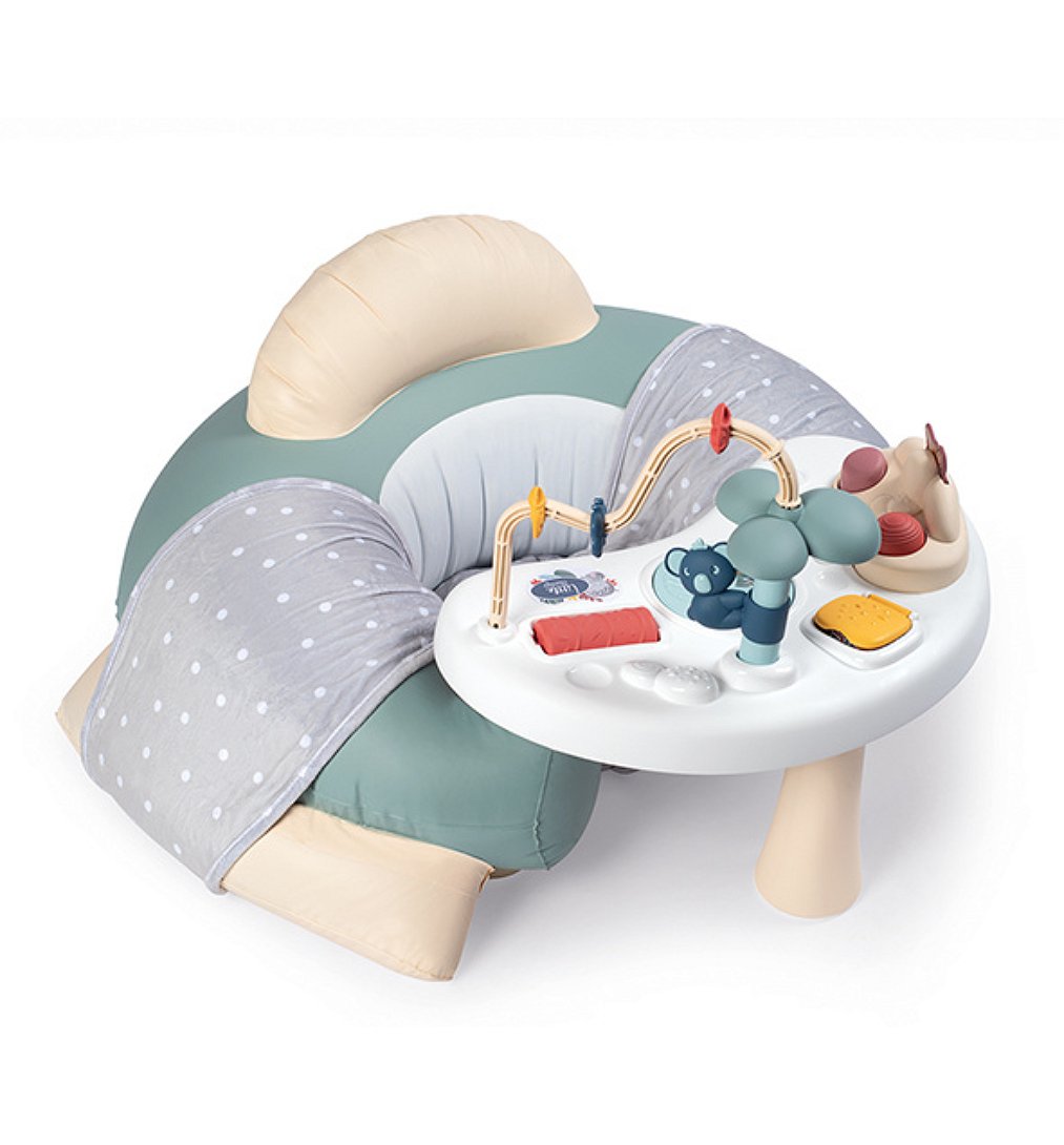 | Plus produit | Siège bébé avec accoudoirs recouverts d\'une housse tissu. Tablette avec de nombreuses activités déveil : miroir, pinet sonore... Siège et tablette peuvent sutiliser séparément. |