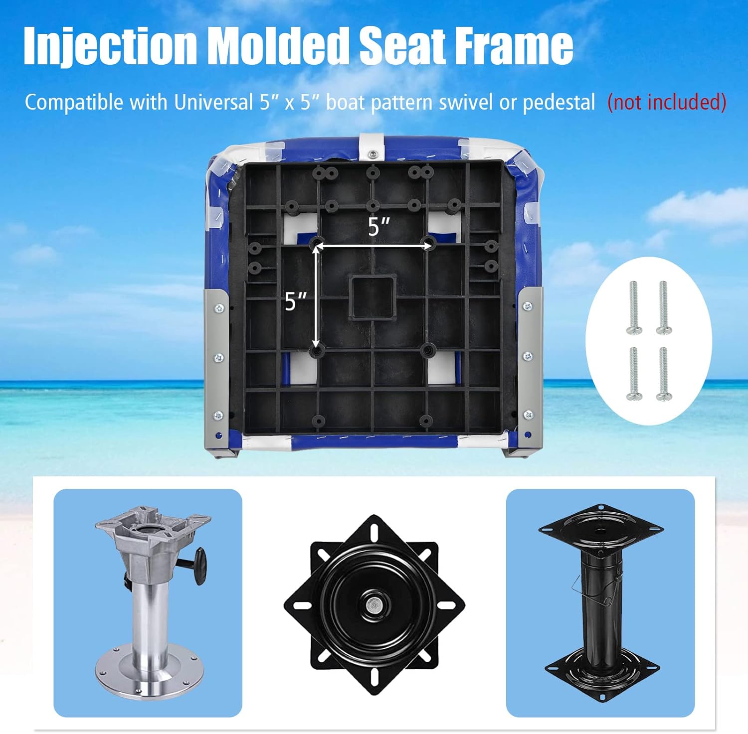 - Installation facile & Capacité importante : Notre siège de bateau est compatible avec le modèle pivotant ou la base universelle de 12,5 cm x 12,5 cm (non inclus). Il est livré avec 4 vis pour faciliter le montage du produit. D’ailleurs, la charge maximale peut aller jusqu’à 115 kg, vous offrant une utilisation en toute confiance.