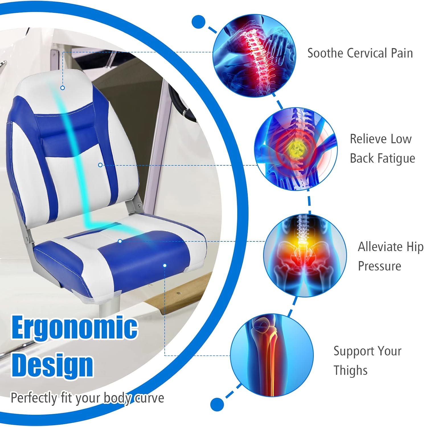 Siège de bateau 1pc siège de pêche pliable avec coussin rembourré doux et coutures renforcées (bleu, 1pc)