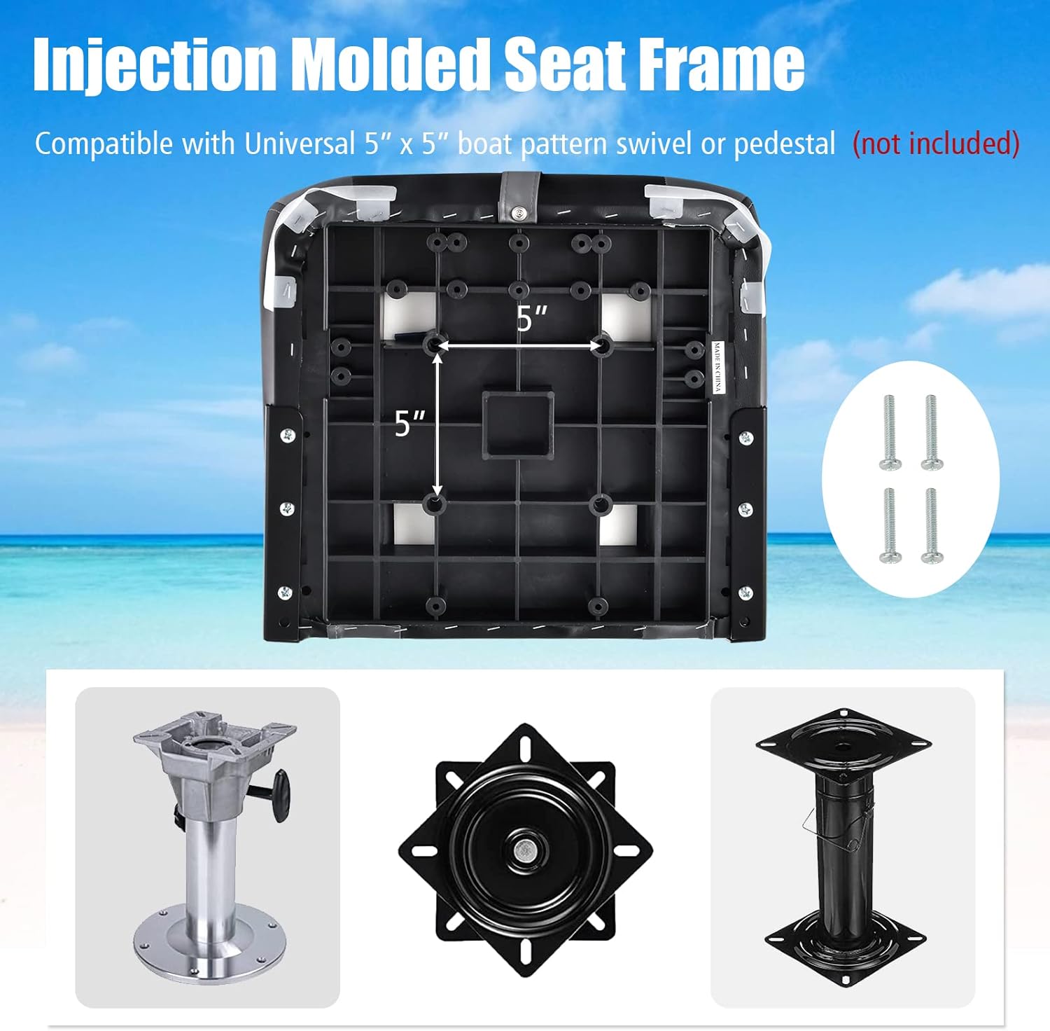 - Installation facile & Capacité importante : Notre siège de bateau est compatible avec le modèle pivotant ou la base universelle de 12,5 cm x 12,5 cm (non inclus). Il est livré avec 4 vis pour faciliter le montage du produit. D’ailleurs, la charge maximale peut aller jusqu’à 115 kg, vous offrant une utilisation en toute confiance.