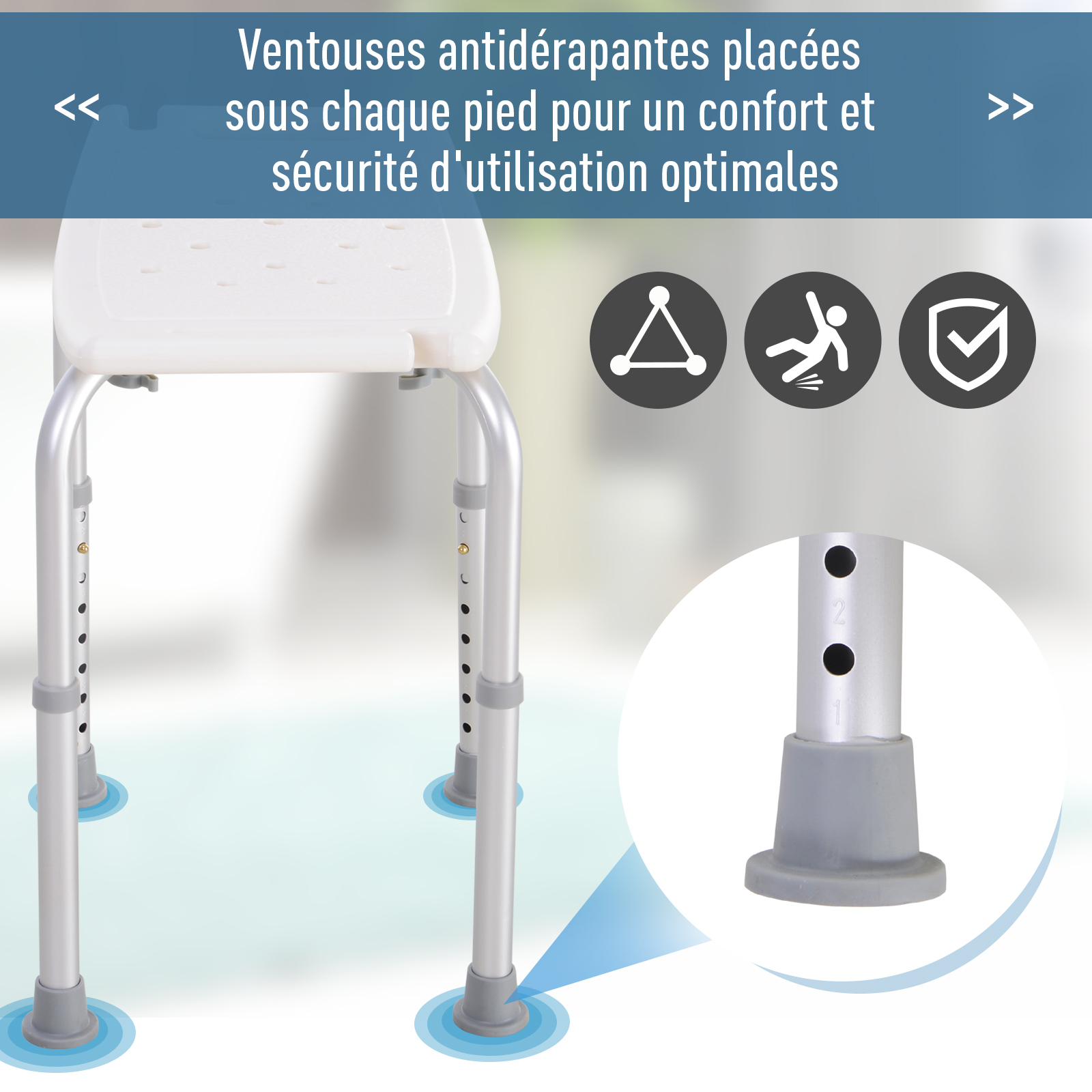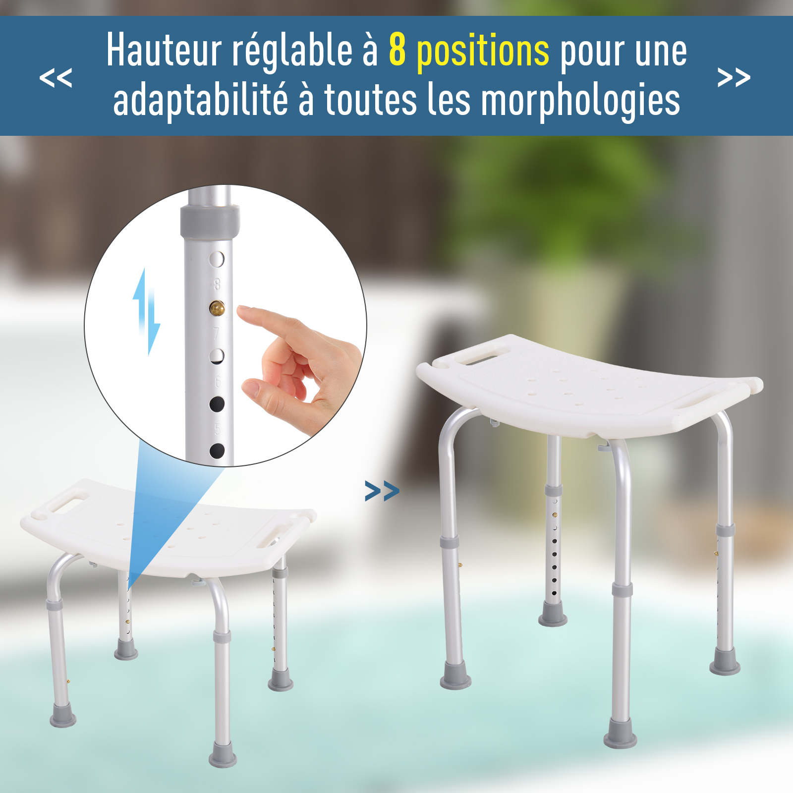 Siège de douche réglable en hauteur tabouret de douche ergonomique pieds antidérapants charge max. 136 Kg