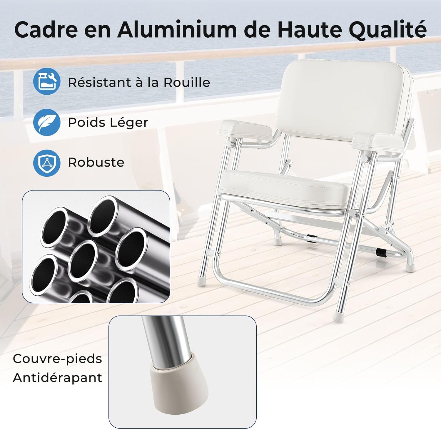 - Cadre en Aluminium Durable : Fabriquée en aluminium de première qualité, la siège de bateau pliante est conçue pour durer, offrant à la fois robustesse et résistance à la rouille pour une utilisation à long terme. Avec une capacité de charge remarquable de 150 kg, le siège de marine offre une assise stable.