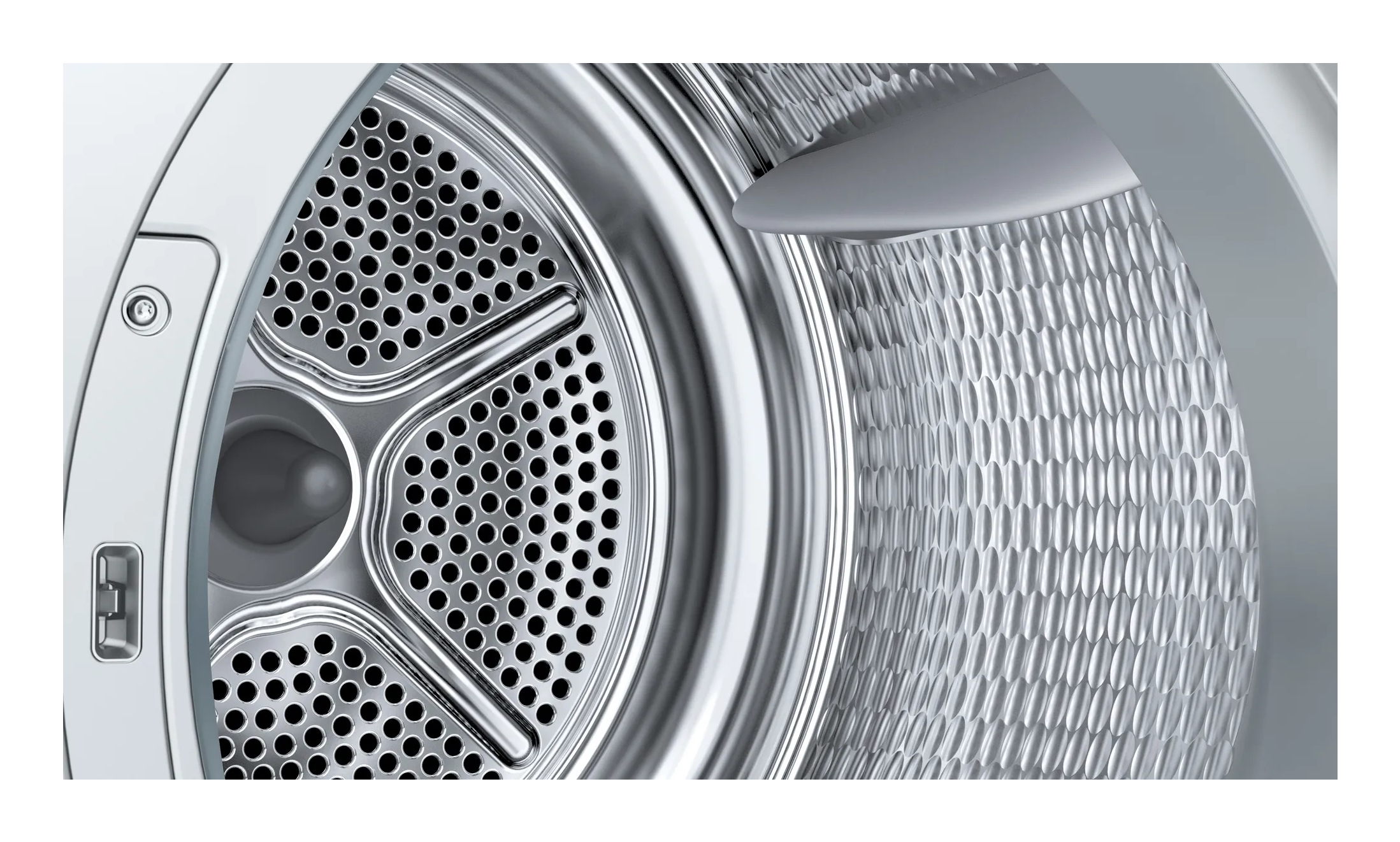 Le système de tambour exclusif garantit un flux d'air permanent et une température constante. Les aubes en forme de vagues brassent l'air chaud, répartissant ainsi le linge plus délicatement et plus efficacement dans le grand volume du tambour. Grâce à la nouvelle structure du tambour qui ménage le linge, celui-ci glisse sur le tambour comme s'il flottait sur un coussin d'air.