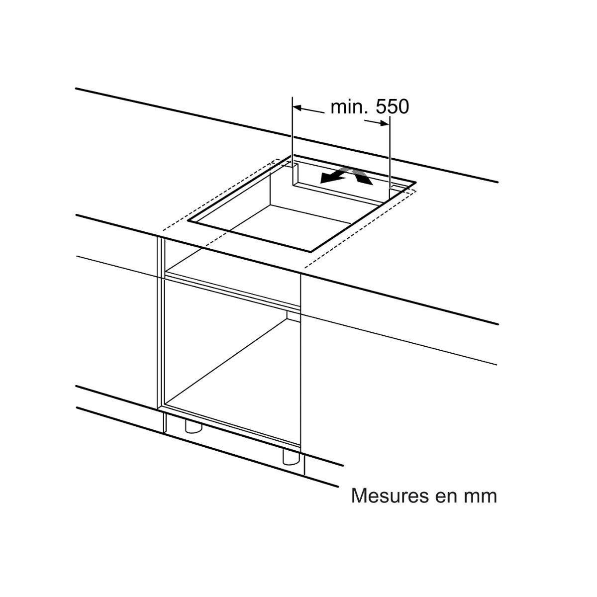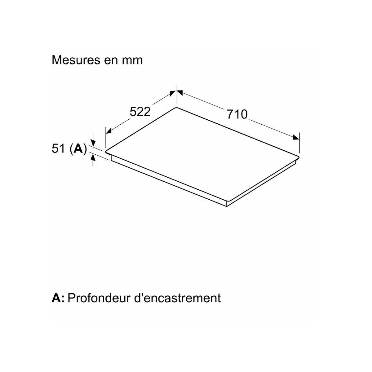 Dimensions d'encastrement 560 x 500 x 51 mm