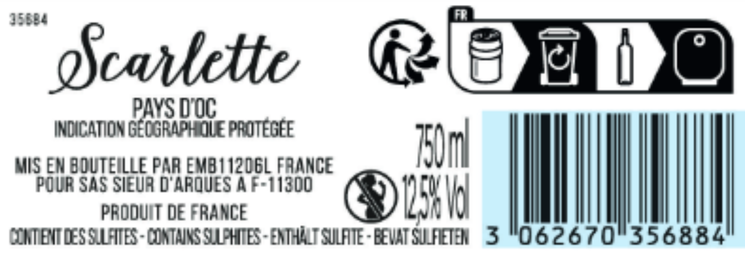 | Libellé | Sieur d'Arques Scarlette - Pays d'Oc IGP - Rosé - 75 cl |