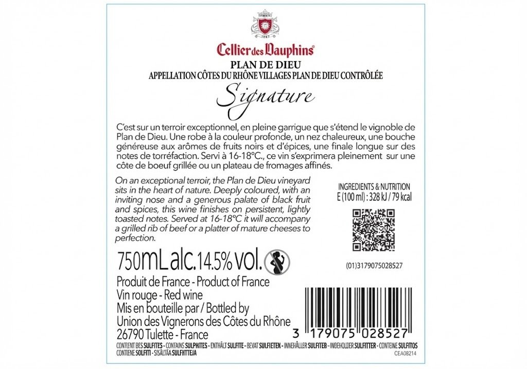 | Libellé | Signature, Cellier des Dauphins, 2024 - Côtes du Rhône Villages Plan de Dieu AOP - Rouge - 75 cl |