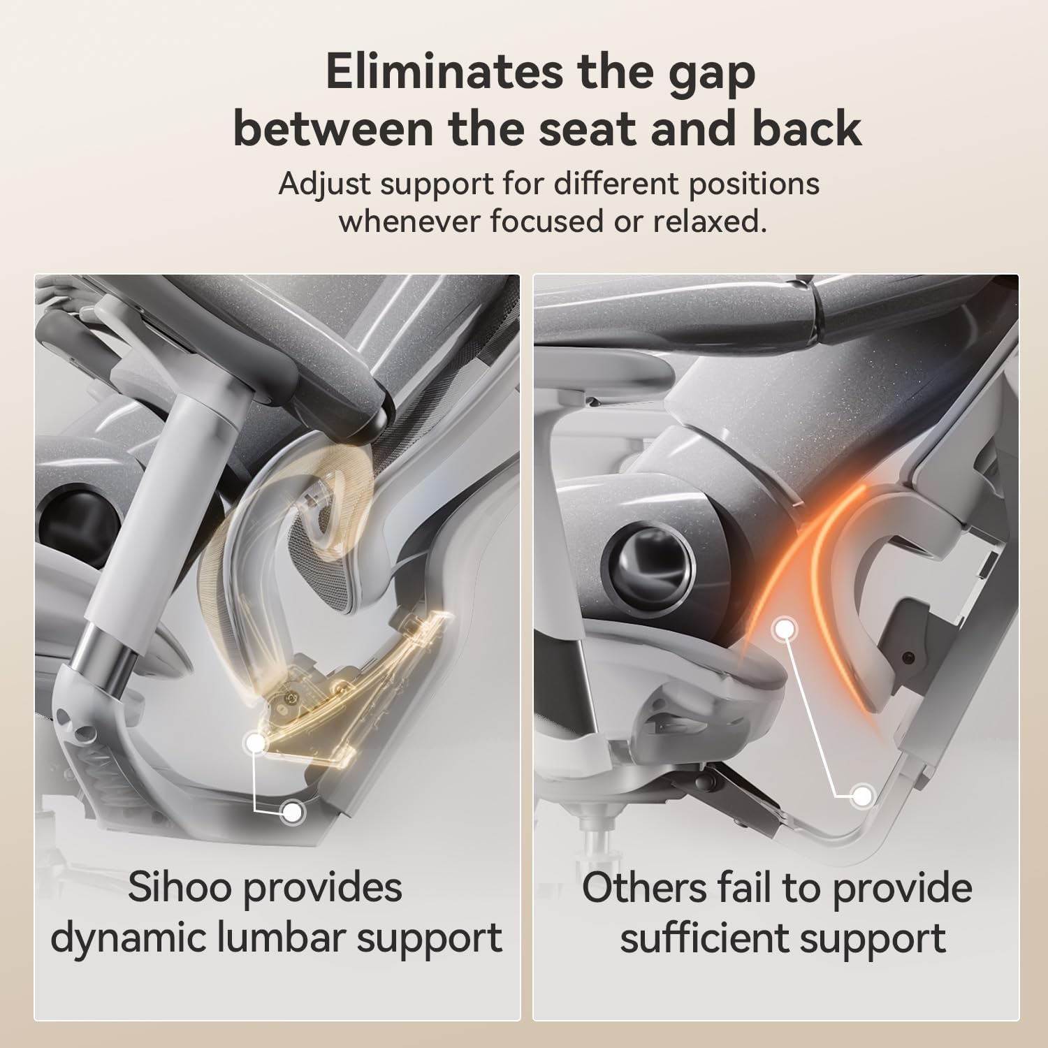 Lorsque vous êtes assis dans le fauteuil SIHOO Doro C300, le soutien lombaire auto-adaptatif suit naturellement les mouvements de votre corps, offrant un maintien continu et un confort optimal pour le bas du dos. Cela soulage efficacement les douleurs dorsales et protège votre santé. Les accoudoirs 3D du fauteuil s'ajustent dans trois directions et se synchronisent lorsque vous vous penchez en arrière, permettant un repos des bras dans toutes les positions.
