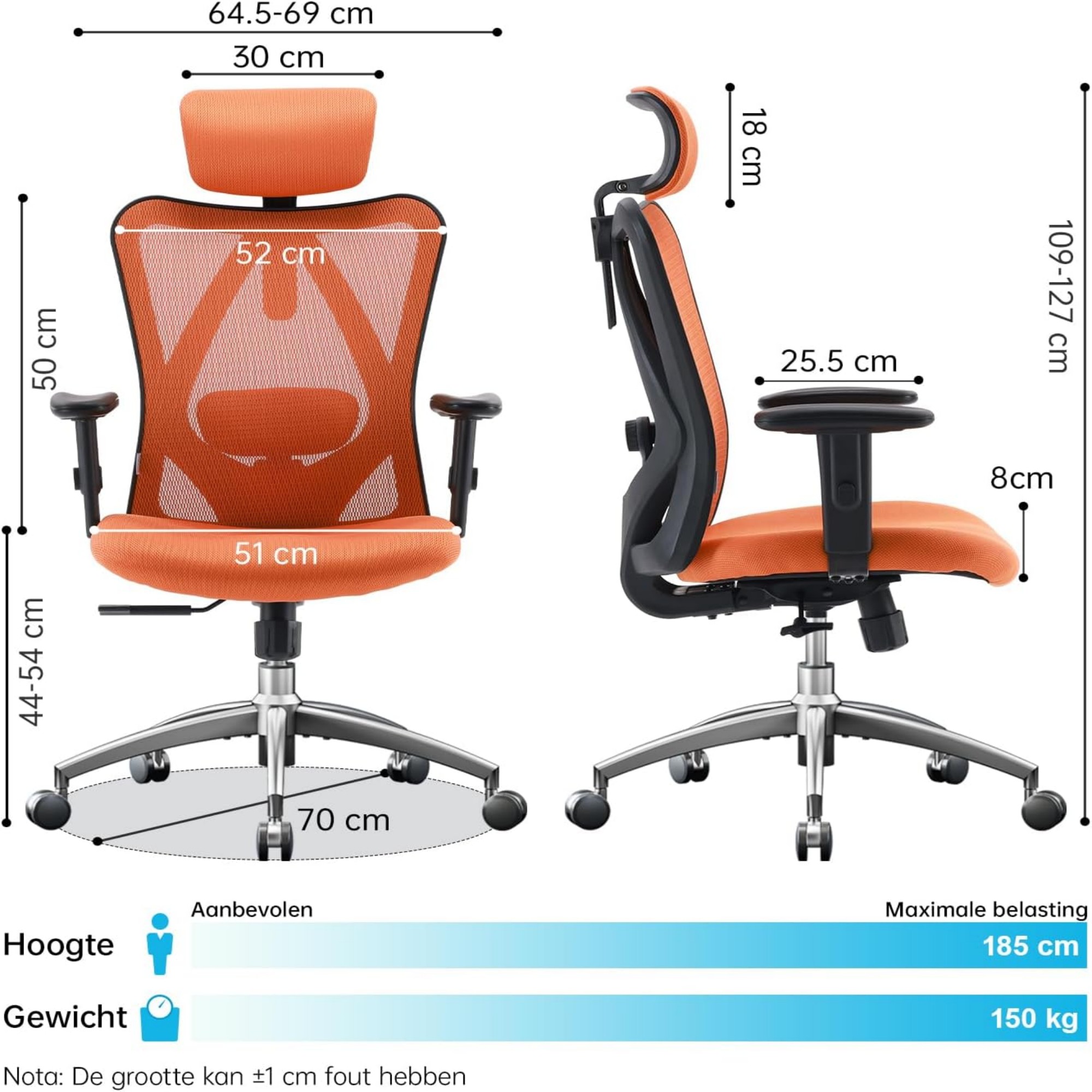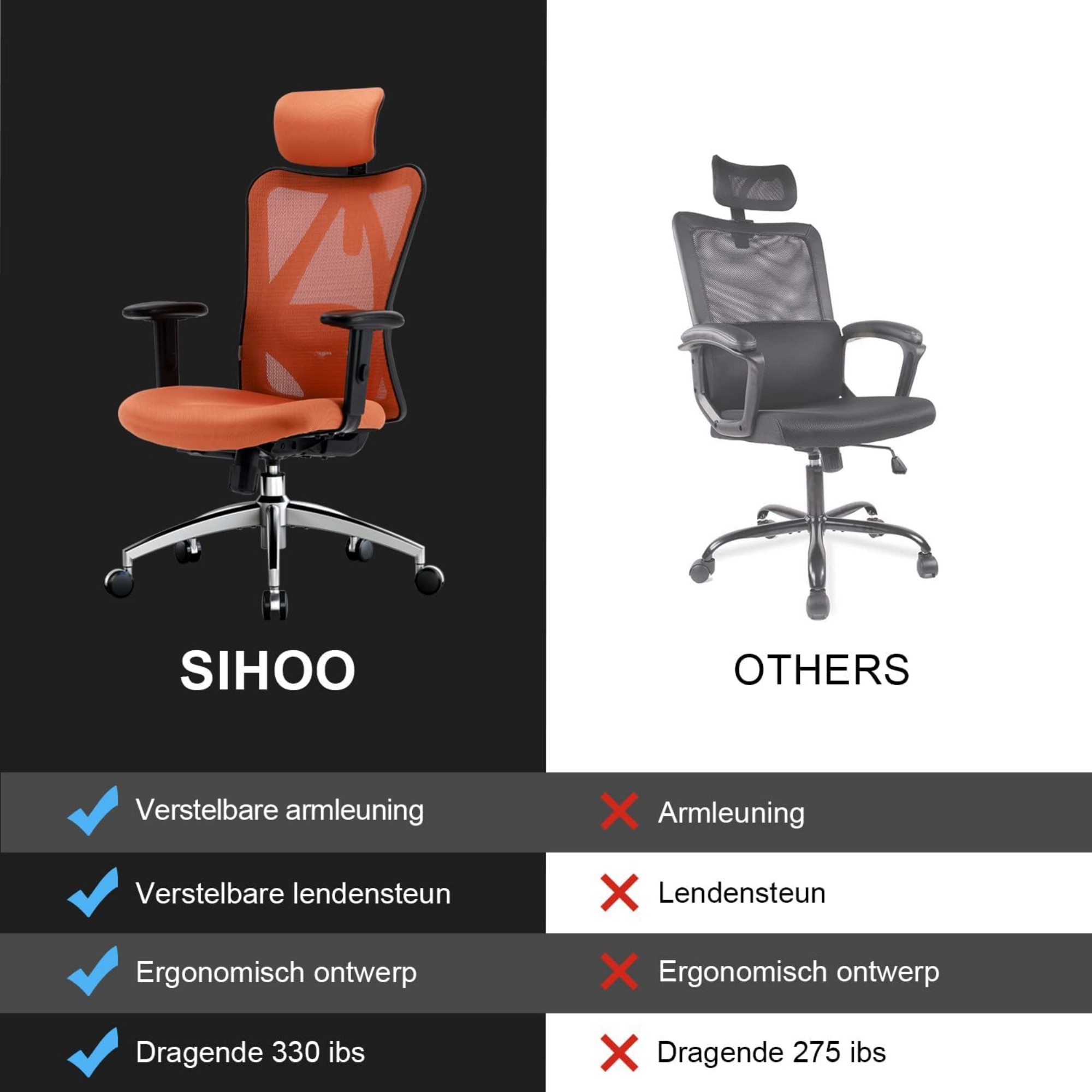 | Libellé | SIHOO M18 Chaise ergonomique - Soutien 4 points (tête/dos/lombaire/mains) - Maille respirante - Appui-tête & lombaire réglables - Pour 1,68-1,88m - 150kg max - Certifié BIFMA - Bureau/maison/jeux - Orange |