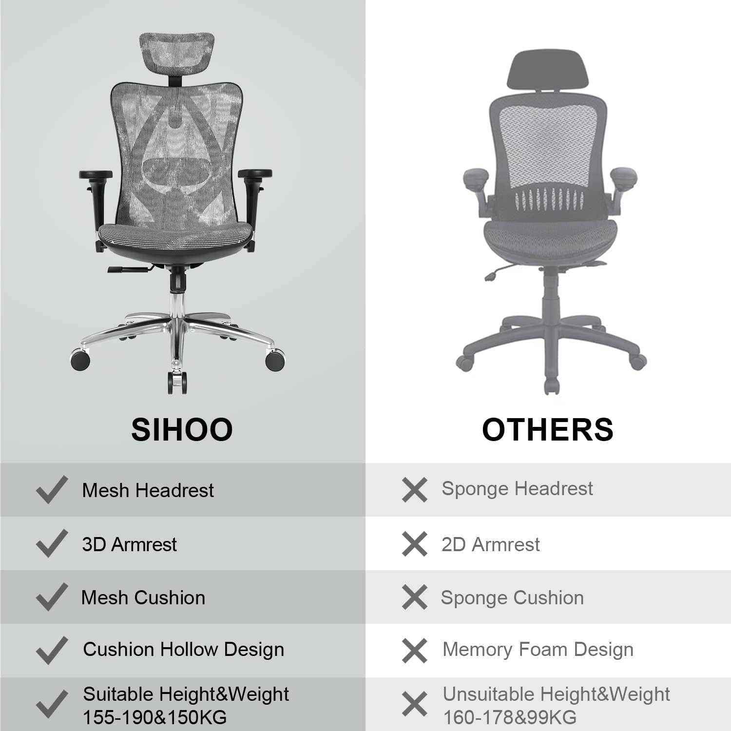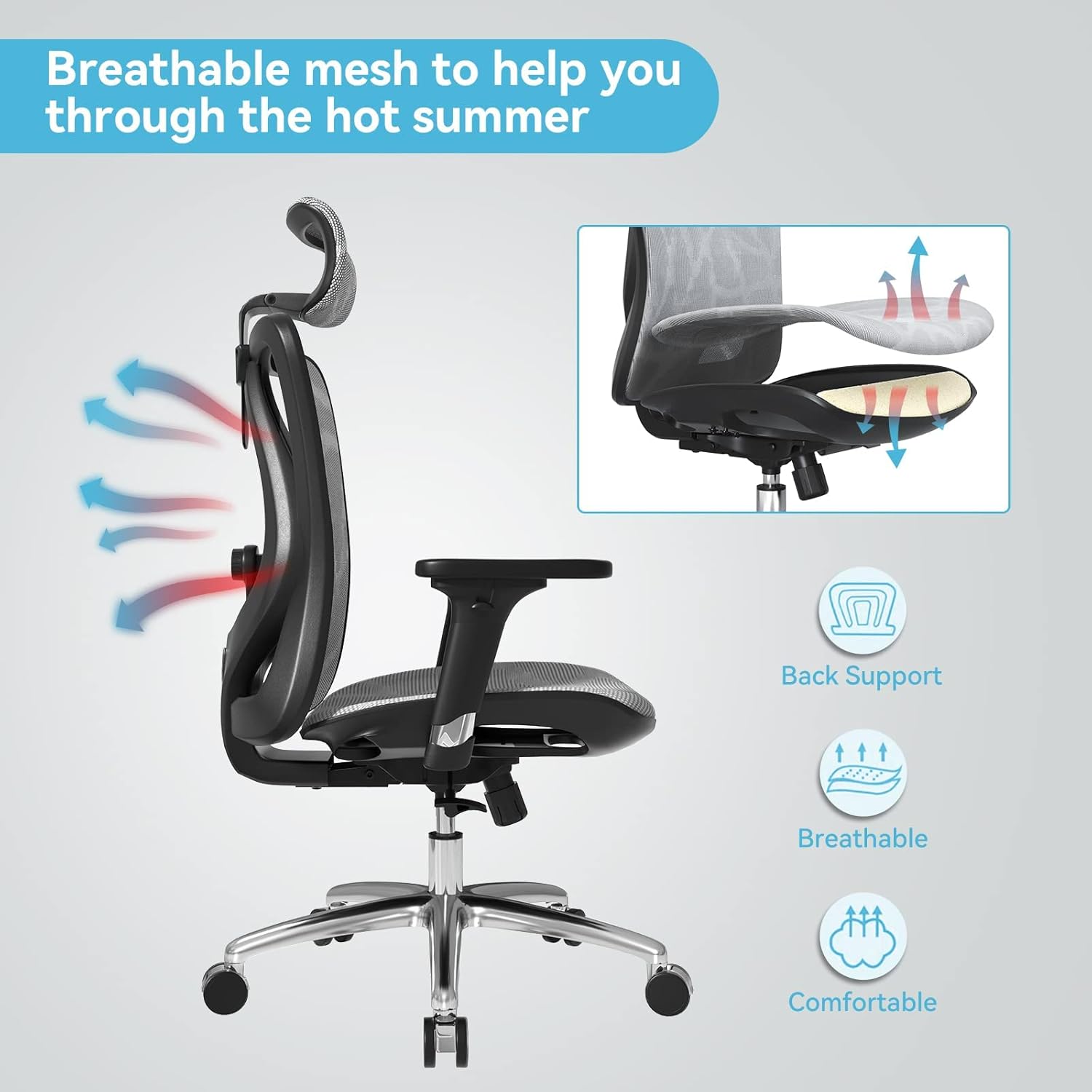 SIHOO M57 Chaise ergonomique - Accoudoirs 3D & support lombaire réglable - Mesh haute qualité - 150 kg ma