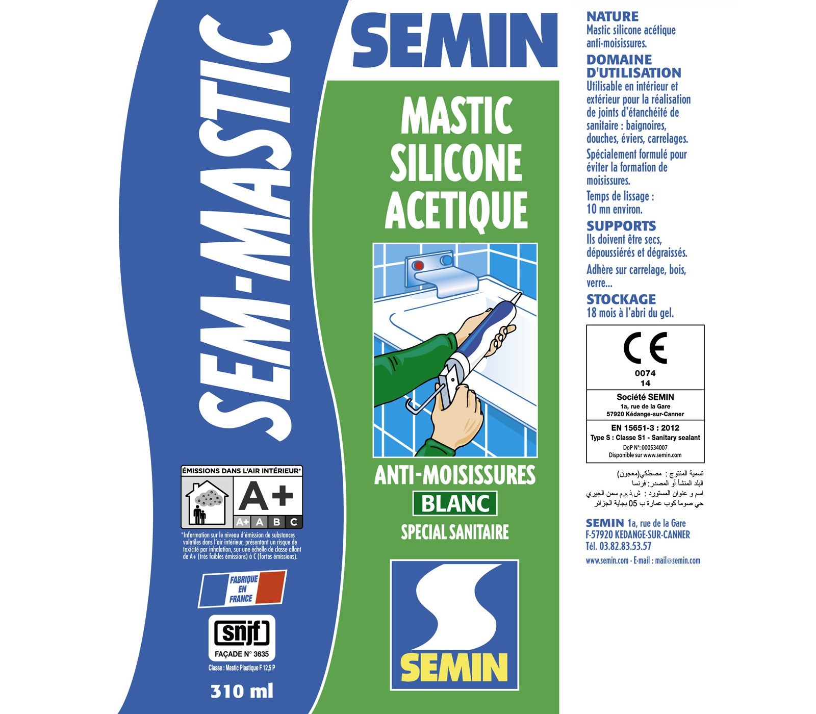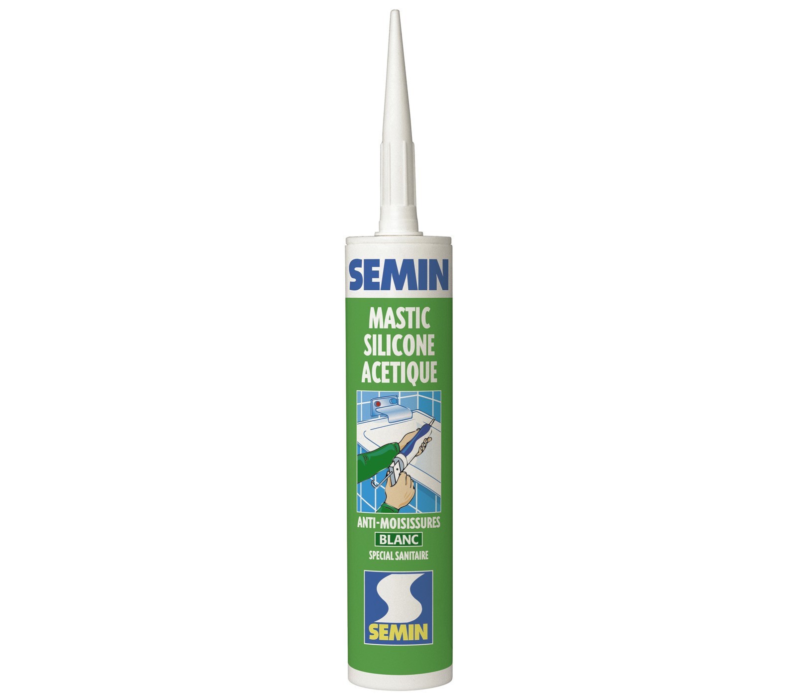 | Libellé | Silicone acétique sanitaire blanc pour joints d'étanchéité anti moisissures Semin - cartouche de 310 ml |