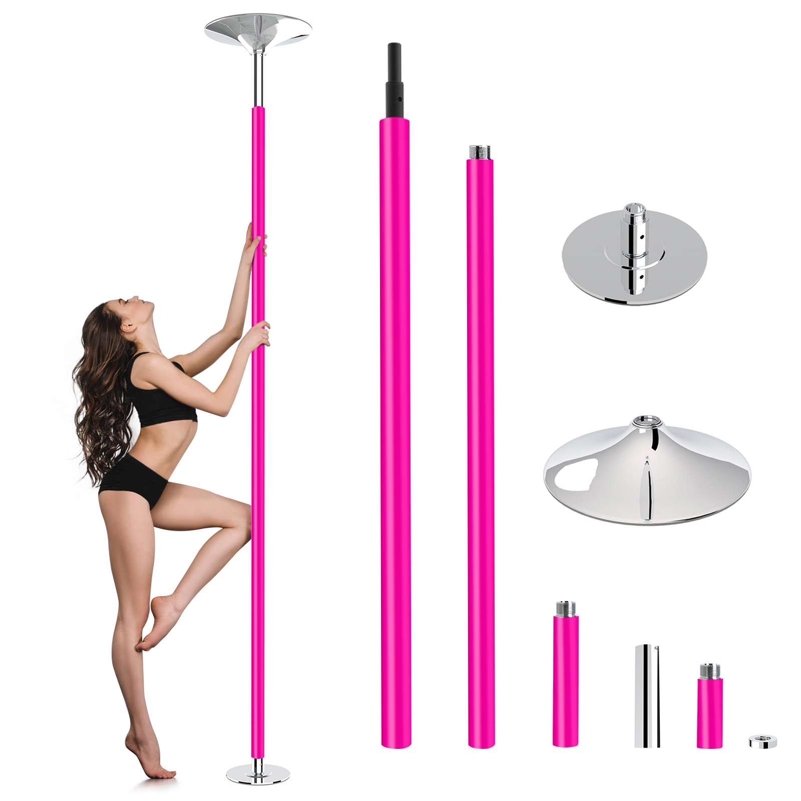 Silicone Barre Pôle de Danse, Hauteur Réglable 223,5-274,5cm, Statique et Rotative, Charge maximale 200 K
