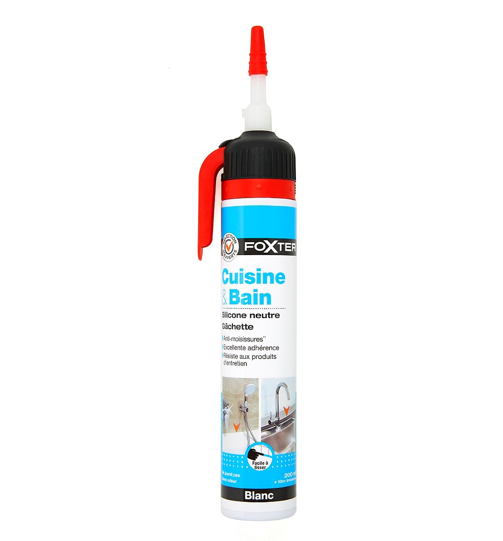 | Libellé | Silicone neutre à gâchette, cuisine et bain, blanc, 200 ml - Sélection d'Experts - Foxter |