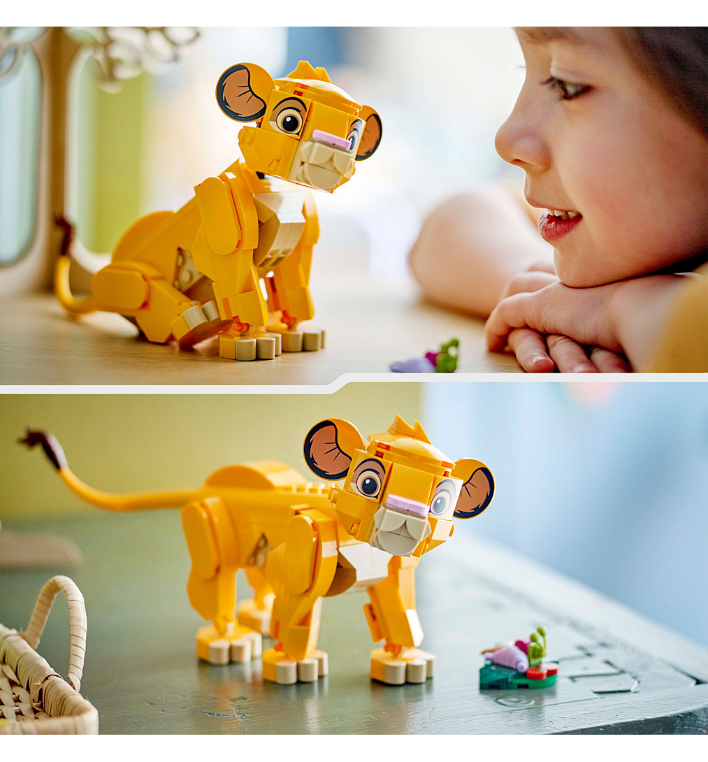 Les enfants et les fans du Roi Lion dès 6 ans vont adorer le set LEGO ǀ Disney Simba, le bébé du Roi lion (43243). Idéale pour jouer et superbe à exposer, la réplique à construire LEGO ǀ Disney du lionceau espiègle du film culte célèbre le 30e anniversaire du Roi Lion et peut tourner la tête et bouger les pattes et la queue. Elle s’accompagne d’une feuille et de 4 « petites bêtes » qui lui serviront de festin. Ce set de construction est une idée de cadeau Disney amusante pour les enfants et les fans du film. Parfait comme décoration interieure, il regorge de détails favorisant le jeu d’imagination et se combine parfaitement avec d’autres sets LEGO ǀ Disney de la gamme (vendus séparément) pour un jeu de rôle amusant. Ses dimensions permettent de le transporter facilement pour jouer partout. Pour une expérience encore plus amusante, l’application LEGO Builder propose une aventure de construction intuitive : les enfants peuvent zoomer, faire pivoter les modèles en 3D, sauvegarder leurs sets et suivre leur progression.