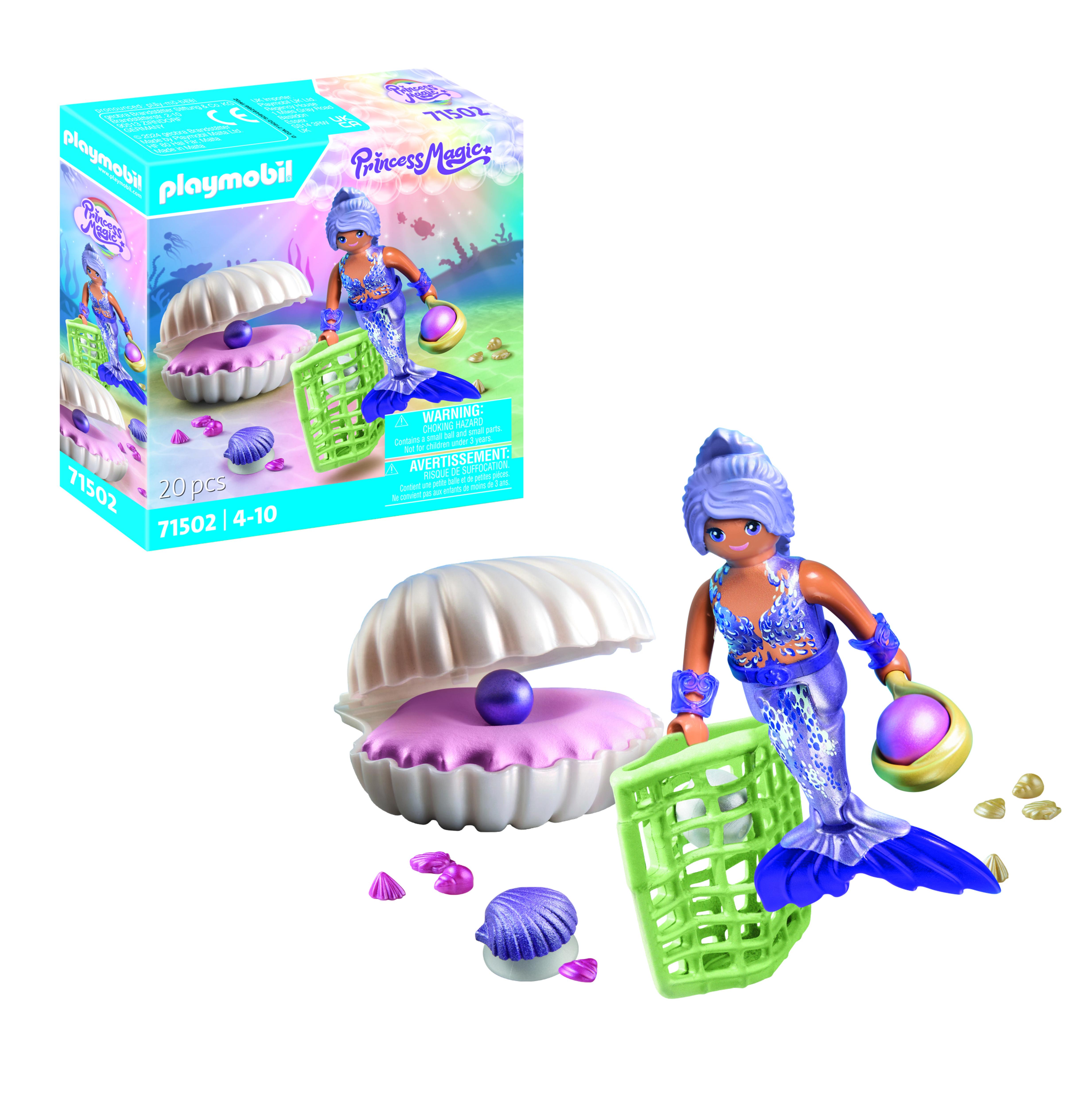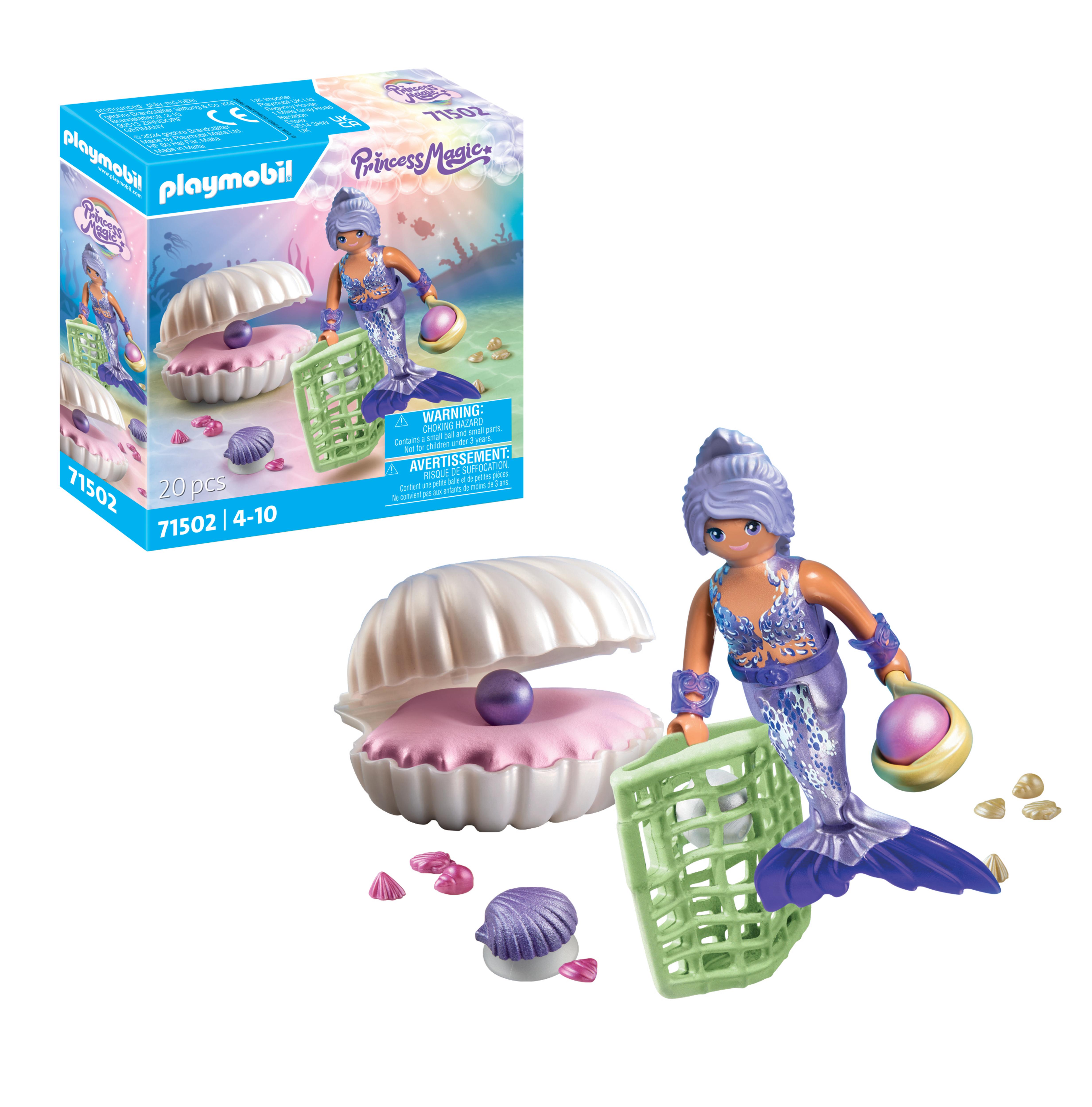 Bienvenue dans le monde coloré des sirènes ! Comprend un personnage, un grand coquillage, un coquillage équipés d'une ventouse pour se fixer au rebord de votre baignoire et des perles.