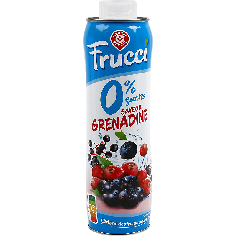 BOISSON CONCENTRÉE À DILUER SAVEUR GRENADINE, AVEC ÉDULCORANTS. FRUCCI