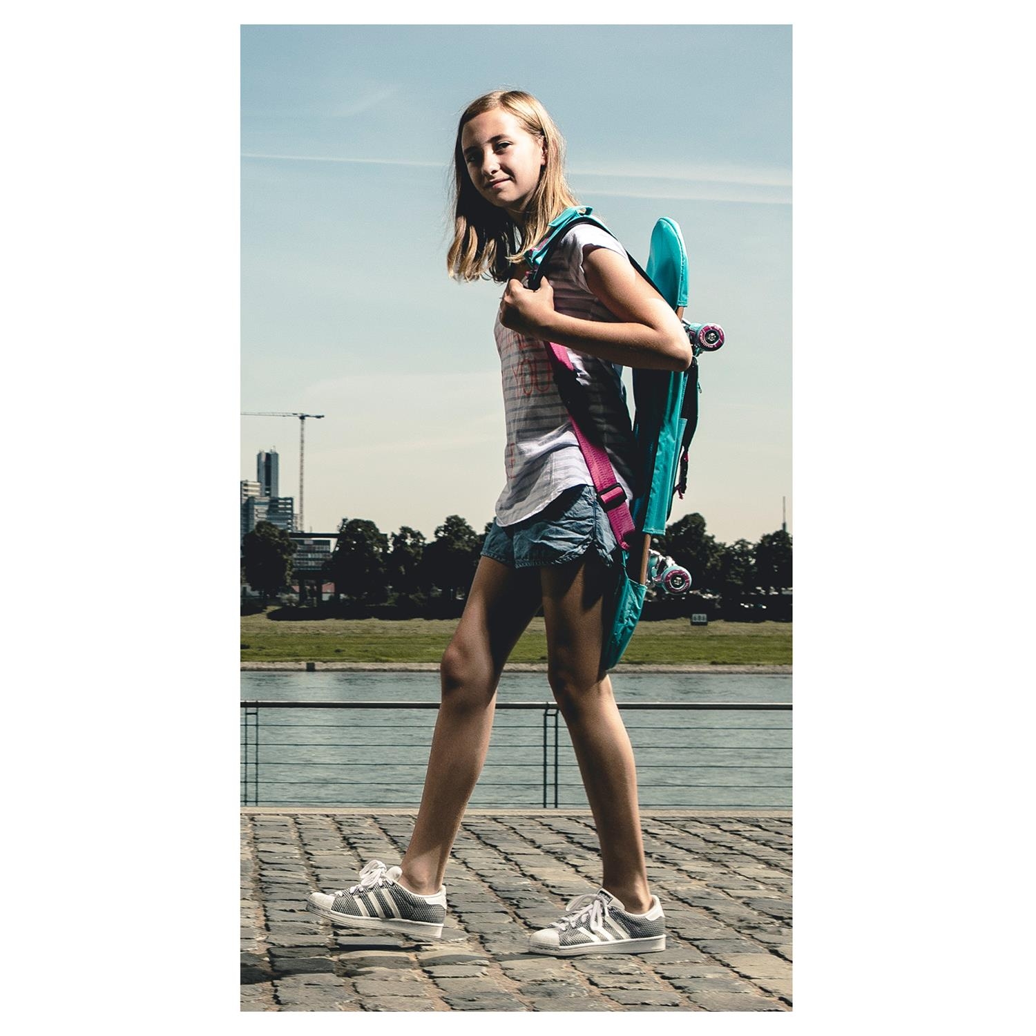 Skateboard Skate Wonders ABEC 3 avec sac à dos - - Set "Skater" avec skateboard et sac à dos pour le transport de la maison au skate parc. - Planche en 9 couches d'érable laminé avec surface agrippante. - Train Heavy-Duty-Aluminium et roues en PU sur roulements ABEC 3. - Le sac de transport est muni de 5 poches de rangement dont une prévue pour smartphone ses sangles sont réglables et rembourrées pour un meilleur confort.- Planche en 9 couches d'érable - Surface agrippante à double kick concave - Roues de 50 x 36 mm (Diam x l) - Roulements à billes de qualité ABEC 3 Carbone - Dimensions (Lxlxh) : 78,8 x 20,3 cm - Charge maximale : 100 kg - Sac à dos en nylon renforcé - Protection de la planche en haut et en bas - Sangles réglables et 5 poches de rangement