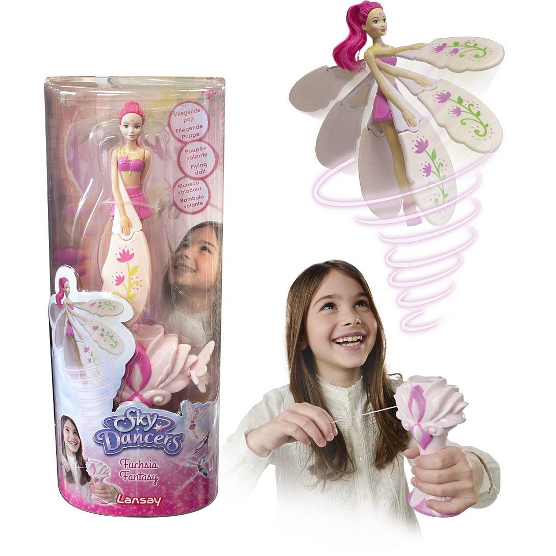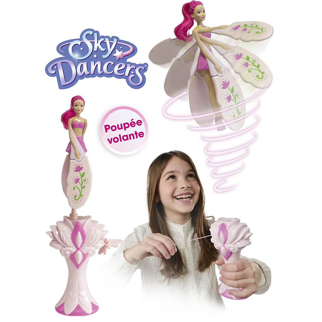 Prête à faire voler tes Sky Dancers ? Découvre Fuchsia Fantasy, tout droit arrivée du Jardin Enchanté ! Fais voler et tourbillonner ta Sky Dancers super tendance ! Pose-la sur sa base et tire sur la corde pour la regarder s’envoler ! Wow, c’est magique ! Découvre également toutes les autres Sky Dancers : Purple Licious, Miss Mint, Sapphire Sparkle et bien d’autres encore ! Elles ont chacune leur univers et n’attendent que toi ! Fonctionne sans piles. Dimension poupée + base : 31 cm