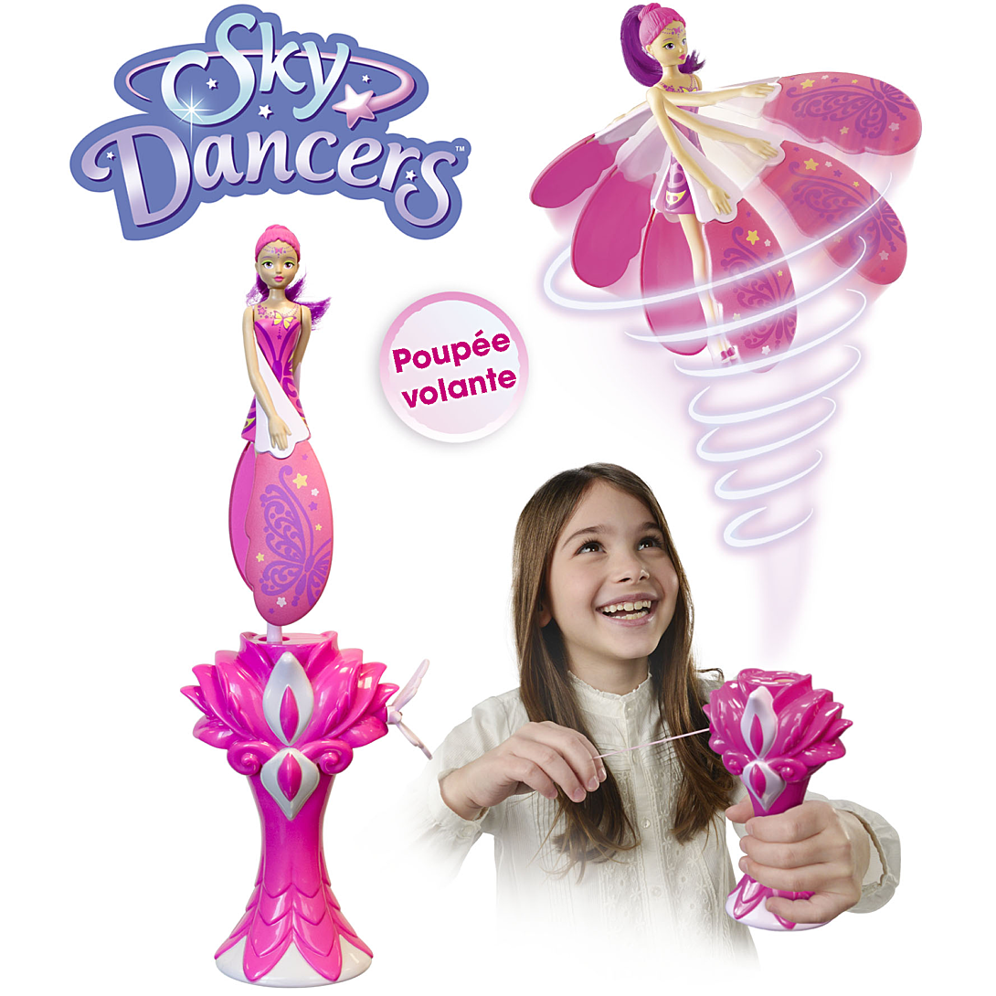 Prête à faire voler tes Sky Dancers ? Découvre Pretty Poppy, une magnifique poupée toute rose qui peut changer les saisons en un clin d'oeil ! Pose-la sur sa base et tire sur la corde pour la regarder s’envoler ! Wow, c’est magique ! Découvre également toutes les autres Sky Dancers : Fuchsia Fantasy, Purple Licious, Turquoise Twinkle et bien d’autres encore ! Elles ont chacune une magnifique chevelure colorée et n’attendent que toi pour s’envoler ! Fonctionne sans piles.
