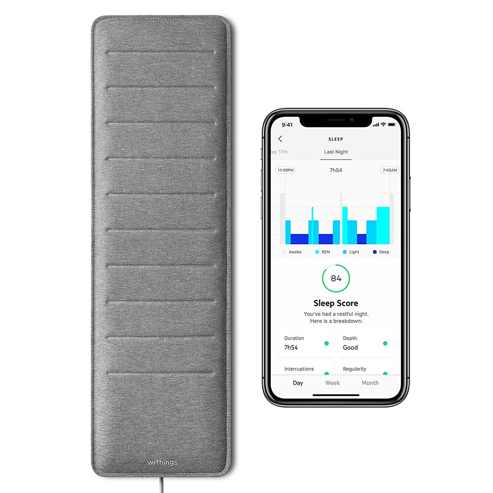 Pour la première fois, obtenez des résultats aussi précis qu'en laboratoire de sommeil depuis le confort de votre maison. Sleep Analyzer concentre le meilleur de la technologie médicale pour analyser votre sommeil et détecter l'apnée du sommeil, une pathologie largement répandue et pourtant sous diagnostiquée. Rien à porter, glissez-le simplement sous votre matelas puis oubliez-le. Profitez d'une mesure optimale grâce à notre capteur sommeil de grade médical et, grâce à notre application Health Mate, découvrez comment obtenir un sommeil de qualité pour une meilleure santé.
