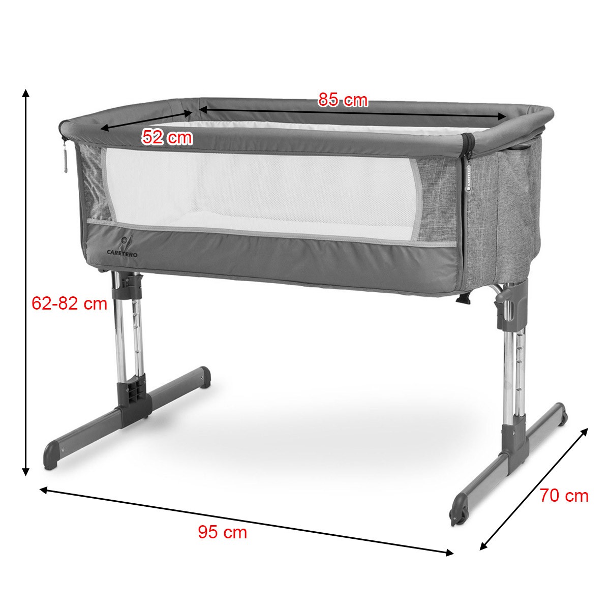 Lit cododo pour bébés, de la naissance à 6 mois (9 kg). Il peut être utilisé comme un lit d'appoint ou jumelé au lit des parents. La paroi latérale peut être ouverte ou fermée. Cela permet de nourrir et d'allaiter le bébé sans avoir à quitter votre lit. Les pieds sont réglables en hauteur sur 7 positions (20 cm). Ils se déplacent sur la largeur pour ajuster la distance entre le berceau et votre lit. Possibilité d'incliner le lit pour faciliter l'endormissement et éviter les régurgitations.