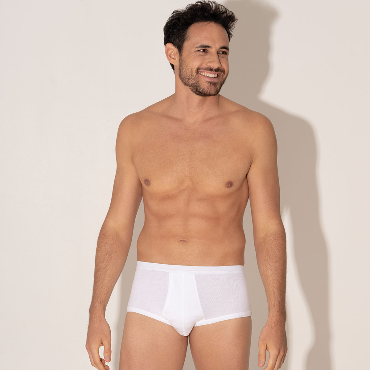 - Slip taille haute ouvert en coton peigné\; de qualité\; supé\;rieure