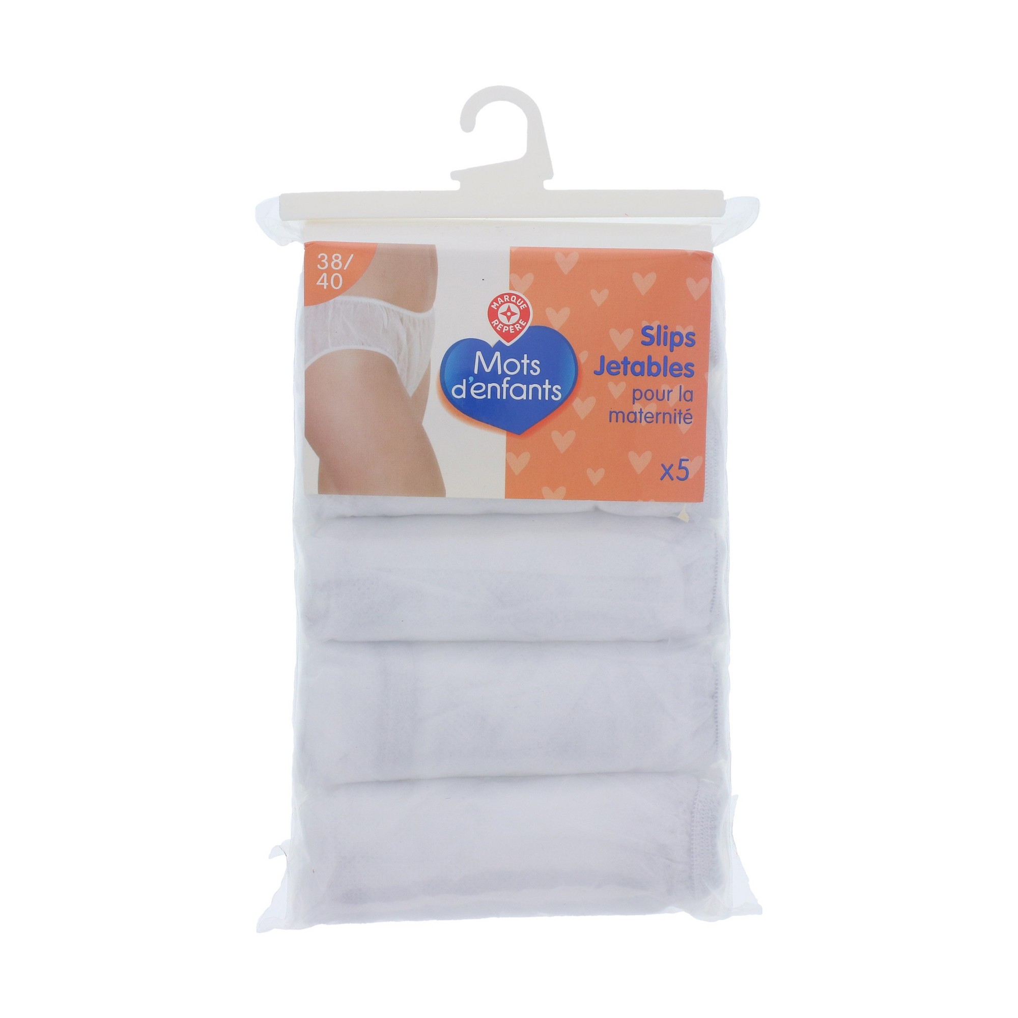 | Libellé | Slips de maternité - mots d'enfants - lot de 5 slips de maternité jetables |